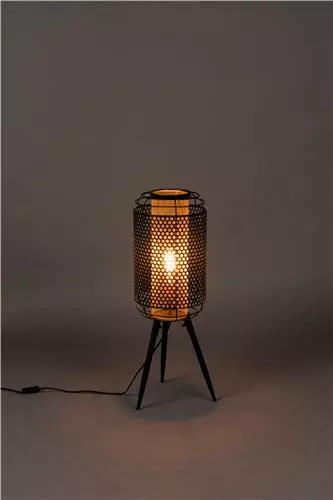 Hieman loft -henkinen musta jalkavalasin, jonka mattaverkkopinta sirottaa valon kauniisti ympärilleen luoden tunnelmallisen kodin. Sisäosan kultainen lieriö tuo lämpöisen tunnelman ja pientä luksusta valaisimeen. Metalli on materiaalina mielenkiintoinen ja kestävä.