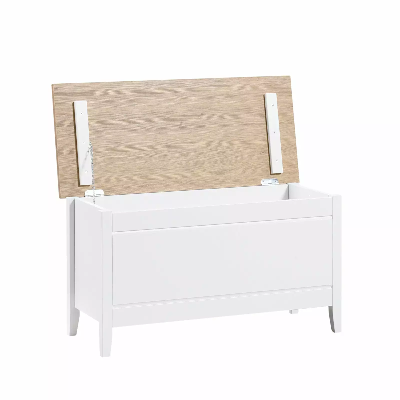 Klassisen tyylikäs, peiliovimallisen Saara-sarjan ihastuttava valkoinen säilytysarkku. Sarjan kalusteisiin saat erilaista ilmettä kannen värin valinnalla – kokovalkoisen sijaan kalusteen kansilevyn voit valita valkosaarnin tai tammen värisenä. Saara-kalusteissa tyyliteltyä ulkonäköä tuovat myös korkeat jalat. Saara-kalustesarjasta löytyvät erilaiset säilytysratkaisut ja saat kodin säilytystilatarpeet ratkaistua yhteneväisesti ja edullisesti.