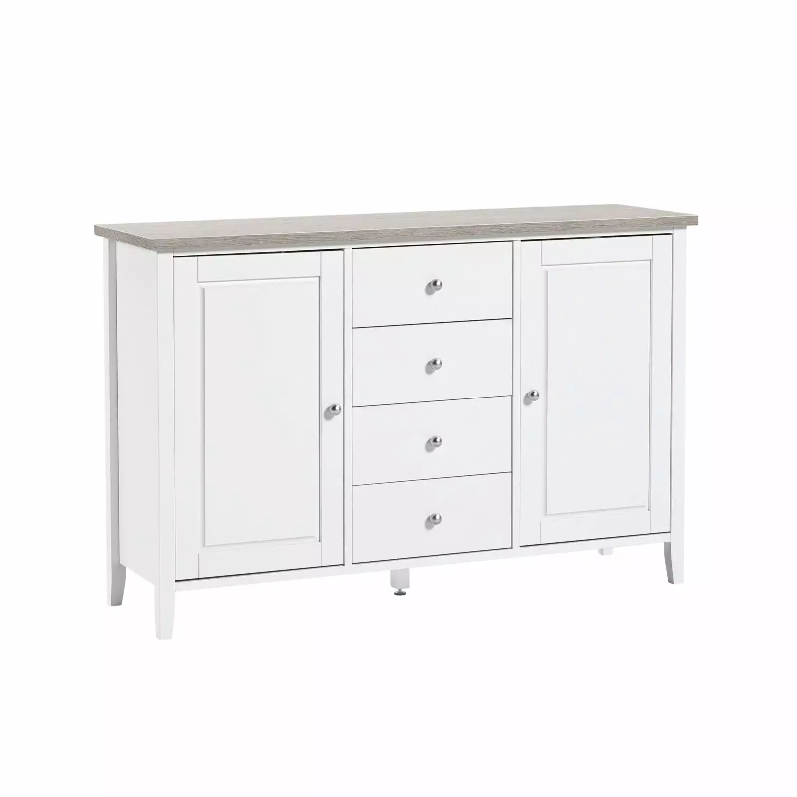 Klassisen tyylikäs, peiliovimallisen Saara-sarjan ihastuttava valkoinen senkki. Sarjan kalusteisiin saat erilaista ilmettä kannen värin valinnalla – kokovalkoisen sijaan kalusteen kansilevyn voit valita valkosaarnin tai tammen värisenä. Saara-kalusteissa tyyliteltyä ulkonäköä tuovat myös hopeanväriset pallovetimet ja korkeat jalat. Saara-kalustesarjasta löytyvät erilaiset säilytysratkaisut ja saat kodin säilytystilatarpeet ratkaistua yhteneväisesti ja edullisesti.