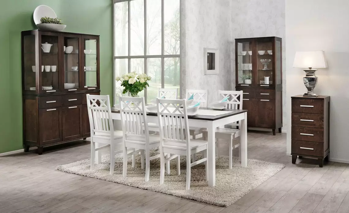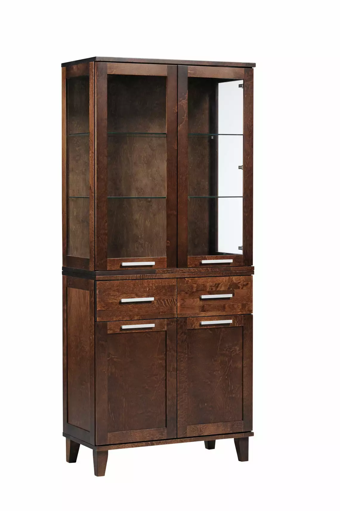 Vuokatti-sarjan korkeassa vitriinissä tavarat pysyvät järjestyksessä monipuolisen säilytystilan ansiosta. Ylempään kaksioviseen lasikkoon saa näyttävästi esille kauneimmat koriste-esineet ja valokuvakehykset. Pienille tavaroille Vuokatti-vitriini tarjoaa säilytystilan keskiosan laatikoiden muodossa. Isommille esineille, kuten vaikkapa astioille, on ovellista kaappitilaa. Näyttävän vitriinin yhdistäminen muihin Vuokatti-kalusteisiin on helppoa.