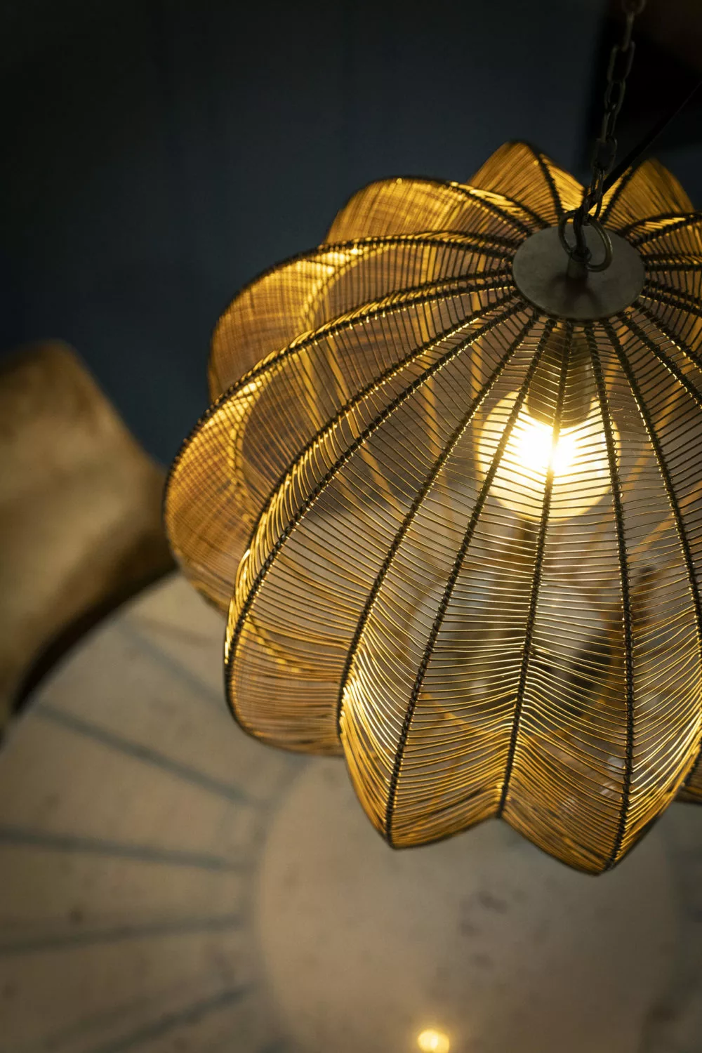 Tyylikkään elegantti Floss large on kuparinvärinen kattovalaisin, jonka ohuet metallisäikeet siivilöivät valon kauniisti tilaan. Suuren tilan näyttävä kattovalaisin.
