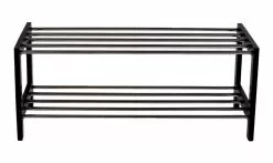 Oikeanlainen kenkähylly auttaa pitämään eteisen siistinä. Kauden käytetyimmät kengät pysyvät järjestyksessä ja nopeasti käyttövalmiina tässä 2-tasoisessa Padova-kenkätelineessä. Hyllyn runko on mustaksi maalattua puuta ja tasojen rimat metallia.