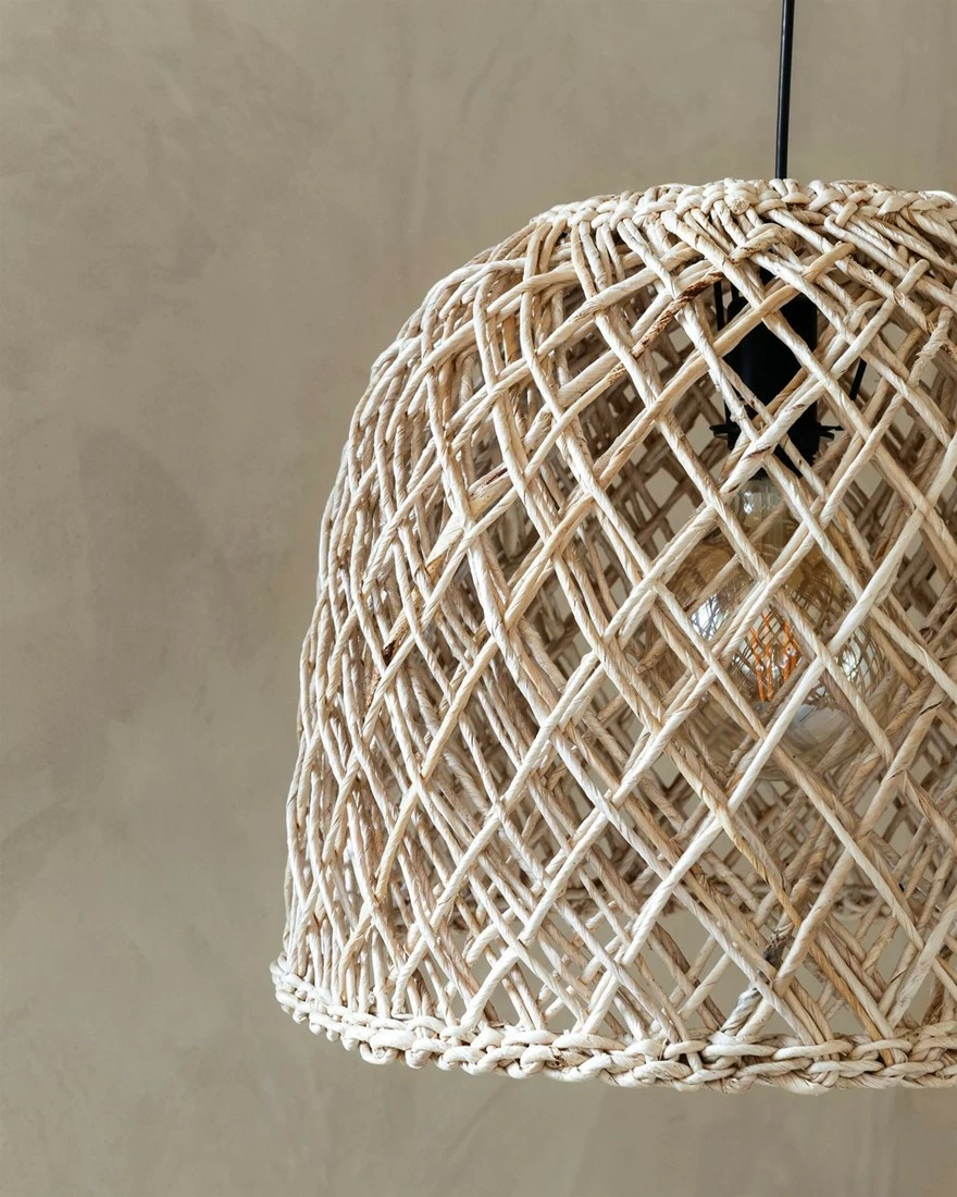 Kaunis hamppunarusta punottu olohuoneen kattovalaisin on kaunis valasin, jonka kaksinkertainen punos pehmentää polttimon antaman valon kauniisti ympärilleen luoden tunnelmallisen kodin. Hieman boho valaisin toimii hyvin myös keittiön valaisimena tai makuuhuoneessa. Lamppukuvun manilahamppupunos sirottaa valon kauniisti ympärilleen ja on materiaalina kestävä myös ekologisesti tarkastellen. Laadukkaat ja kestävät luonnonmateriaalit kotoisaan kotiin ja ripaus boheemia henkeä tyylikkääseen sisustukseen.