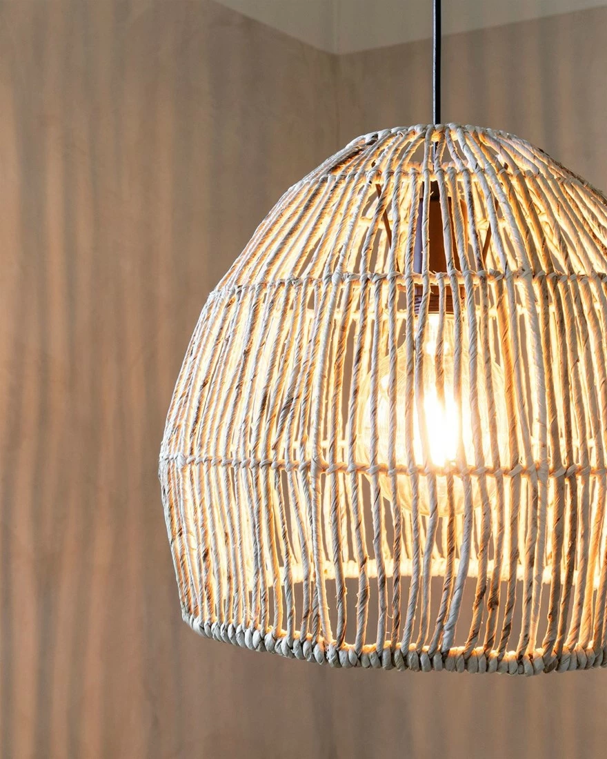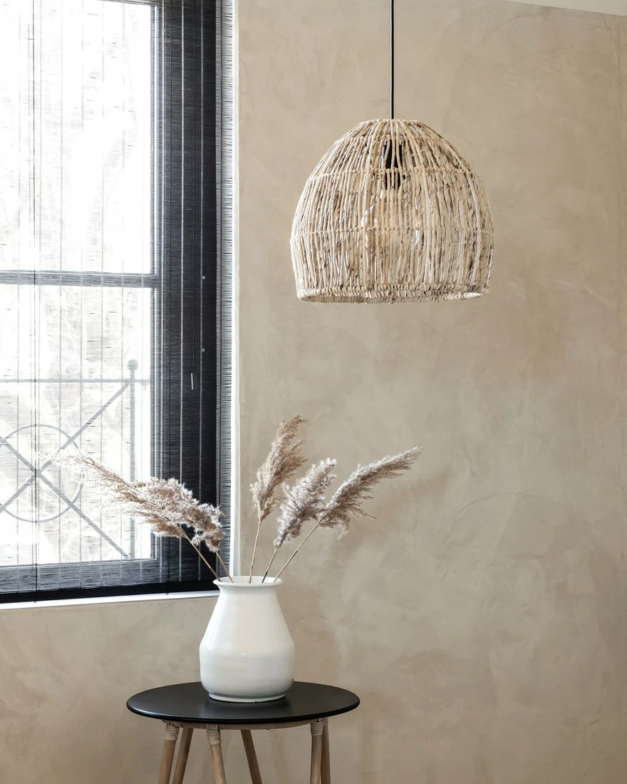 Kaunis hamppunarusta punottu kattovalaisin on oivallinen riippuvalaisin saarekkeen päälle ja pehmentää modernin kettiön tyyliä. Pieni, sopivan boho valaisin toimii hyvin myös pienissä tiloissa. Lamppukuvun manilahamppupunos sirottaa valon kauniisti ympärilleen ja on materiaalina kestävä myös ekologisesti tarkastellen. Laadukkaat ja kestävät luonnonmateriaalit kotoisaan kotiin ja ripaus boheemia henkeä tyylikkääseen sisustukseen.