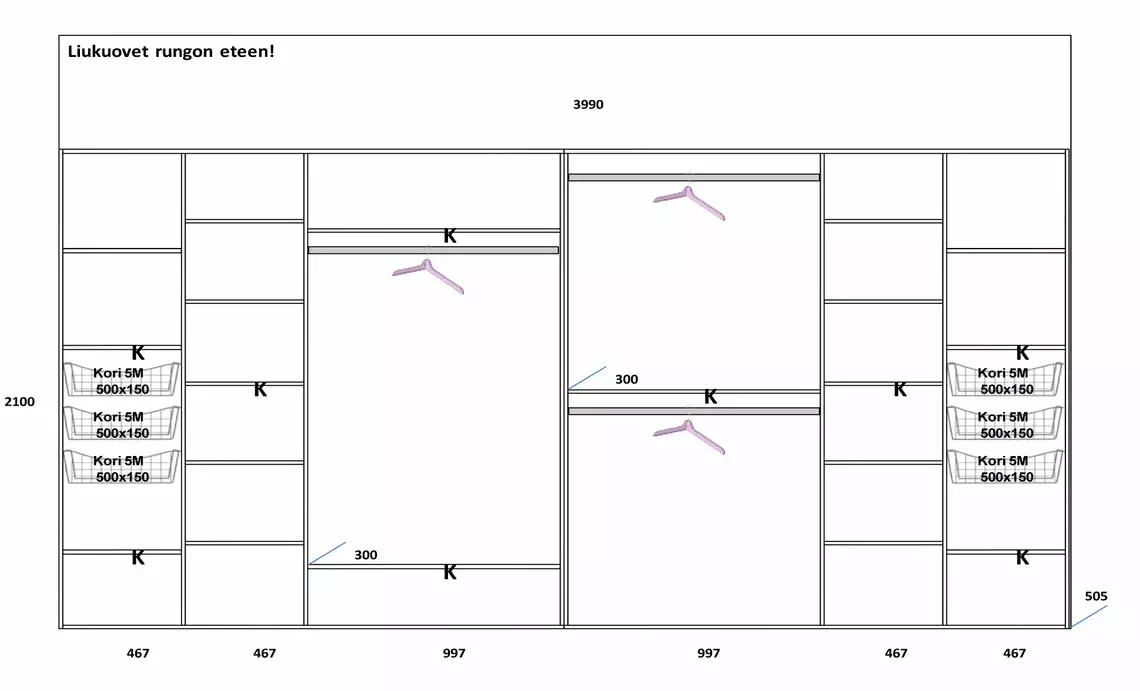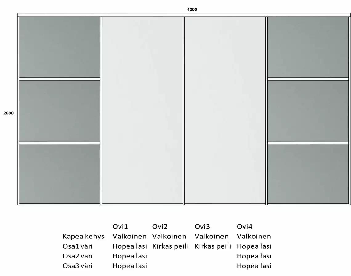 Lakeus Design Oy LAKEUS DESIGN Liukuovikaappi Mittatilauksena 400 X 50 X 260 Cm