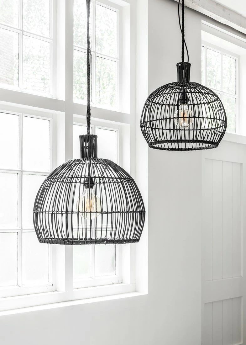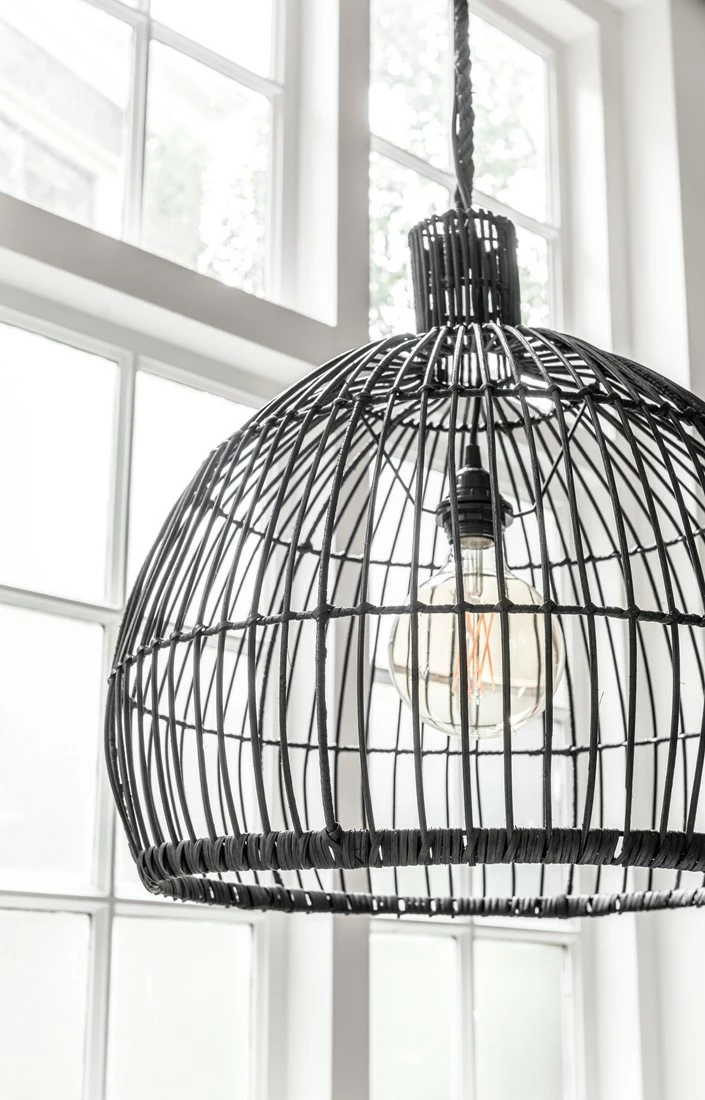 Kevytrakenteinen musta rottinkivalaisin on kelpo tunnelmanluoja, kun haluat kotiisi lämmintä kotoisaa tunnelmaa mutta pienellä särmälisällä. Musta roikkuvalaisin antaa kauniin tunnelmavalon häikäisemättä ja toimii oivallisesti samalla näyttävänä sisustuselementtinä. Ripusta vahvasta juuttiköydestä haluamaasi korkeuteen.