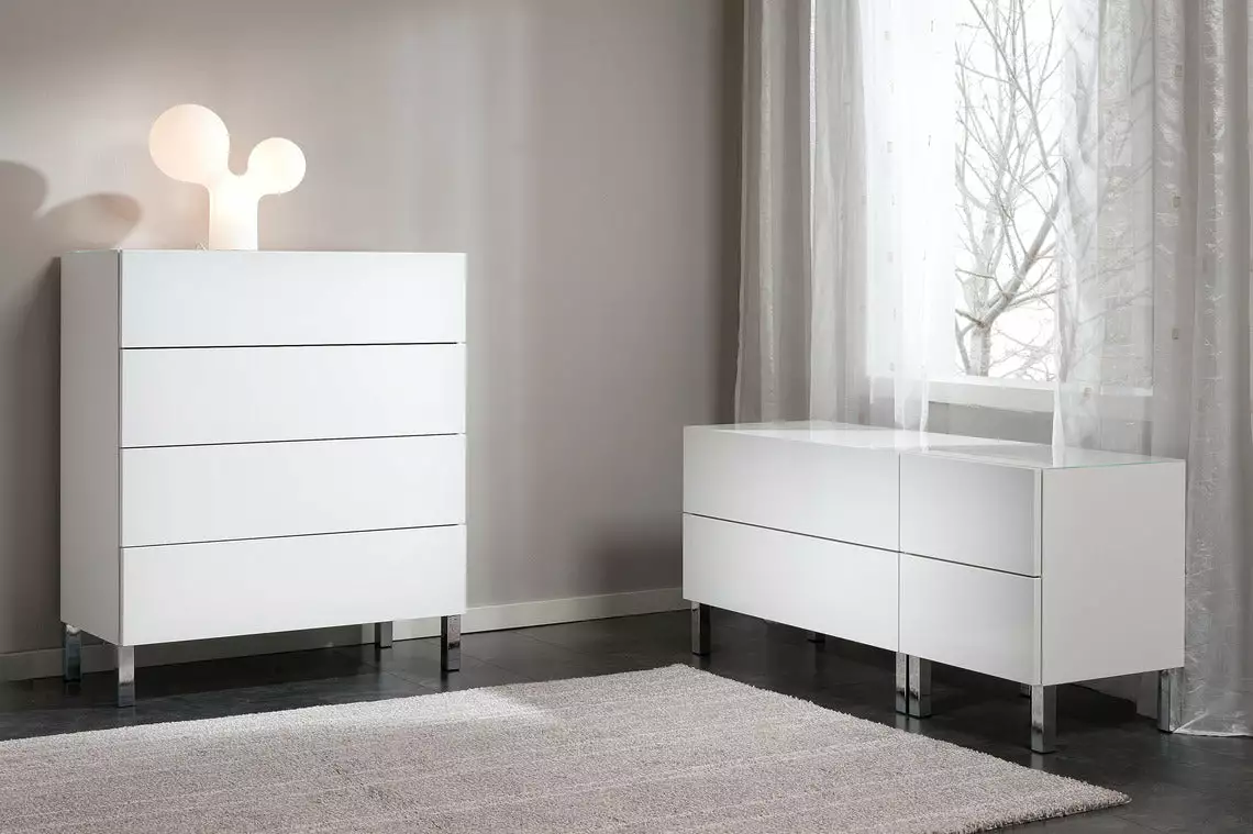 Lumo tuo kotiin ylellisyyttä hohtavan valkoisena. Korkeakiiltomaalatut etusarjat ja valkoiset lasikannet viimeistelevät kalusteet upeasti. Kätevä ’push to open’ -mekanismi tekee käytöstä nautittavan helppoa. Mukana tulee seinään kiinnittämistä varten kaatumisenestonauha, jolla etenkin lapsi- tai lemmikkiperheessä voi turvata huonekalun paikallaan pysymisen.