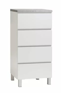 Kotimainen Viiva on upea valkoinen tuoteperhe laadun ja tyylikkyyden ystäville. Modernisti muotoiltujen kalusteiden ulkonäköön voi vaikuttaa valitsemalla kansilevyn kokovalkoisen sijaan useasta eri värisävyvaihtoehdosta. Lisäksi kalusteen jalkamallin voi valita erilaisista vaihtoehdoista.