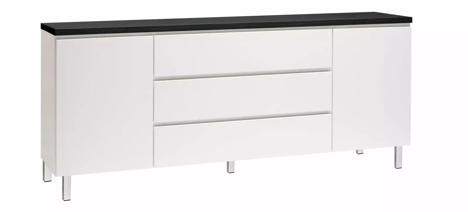 Viiva-sarjan senkki tuo näppärää säilytys- ja laskutilaa kodin eri tiloihin. Ovikaapeissa on tilaa isommille tavaroille, ja keskiosan leveissä laatikoissa pidät pientavarat järjestyksessä ja siististi poissa silmistä. Voit valita senkin joko 5,5 cm korkealla jalkasokkelilla tai 10 cm korkeilla jaloilla. Senkkiin on saatavana lisävarusteena myös valkoinen karkaistu lasikansi.