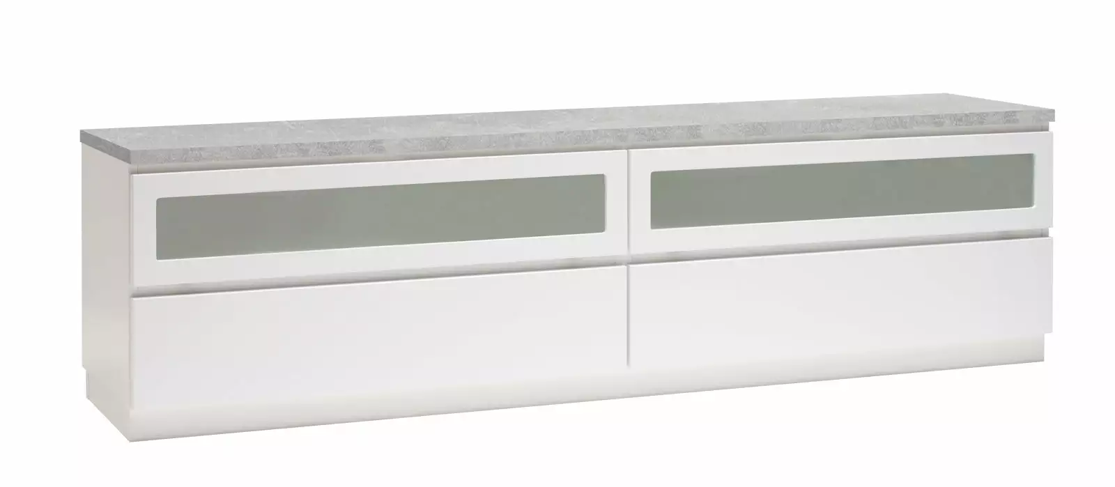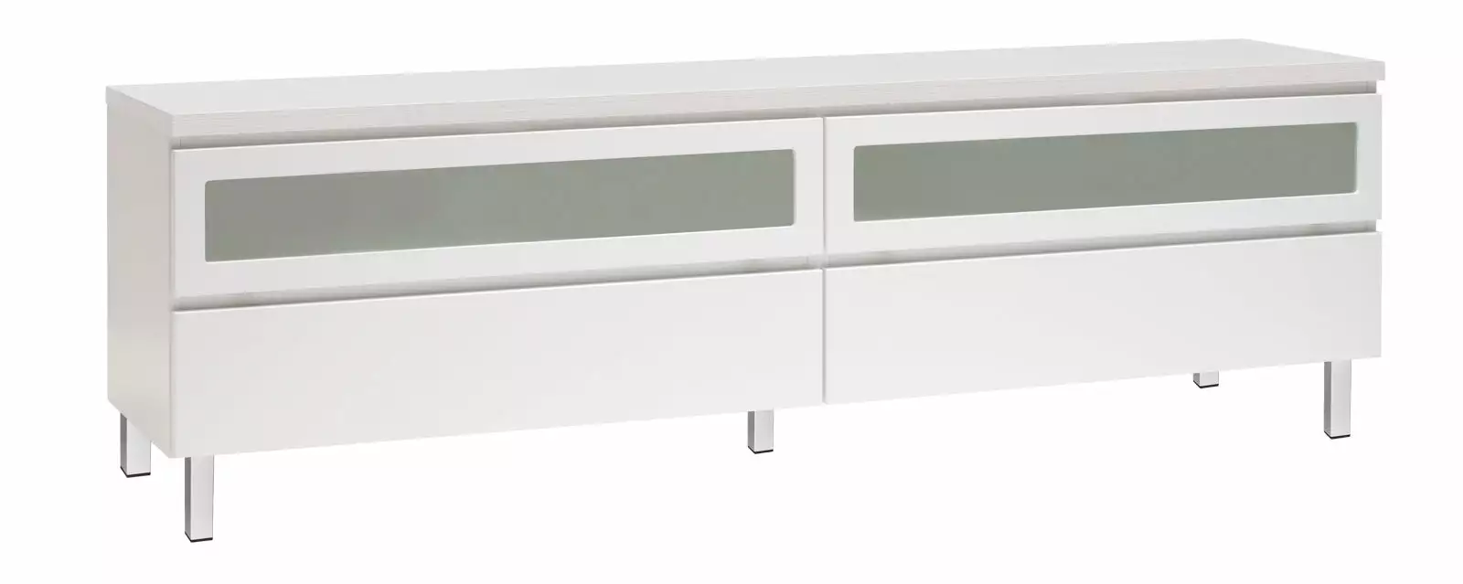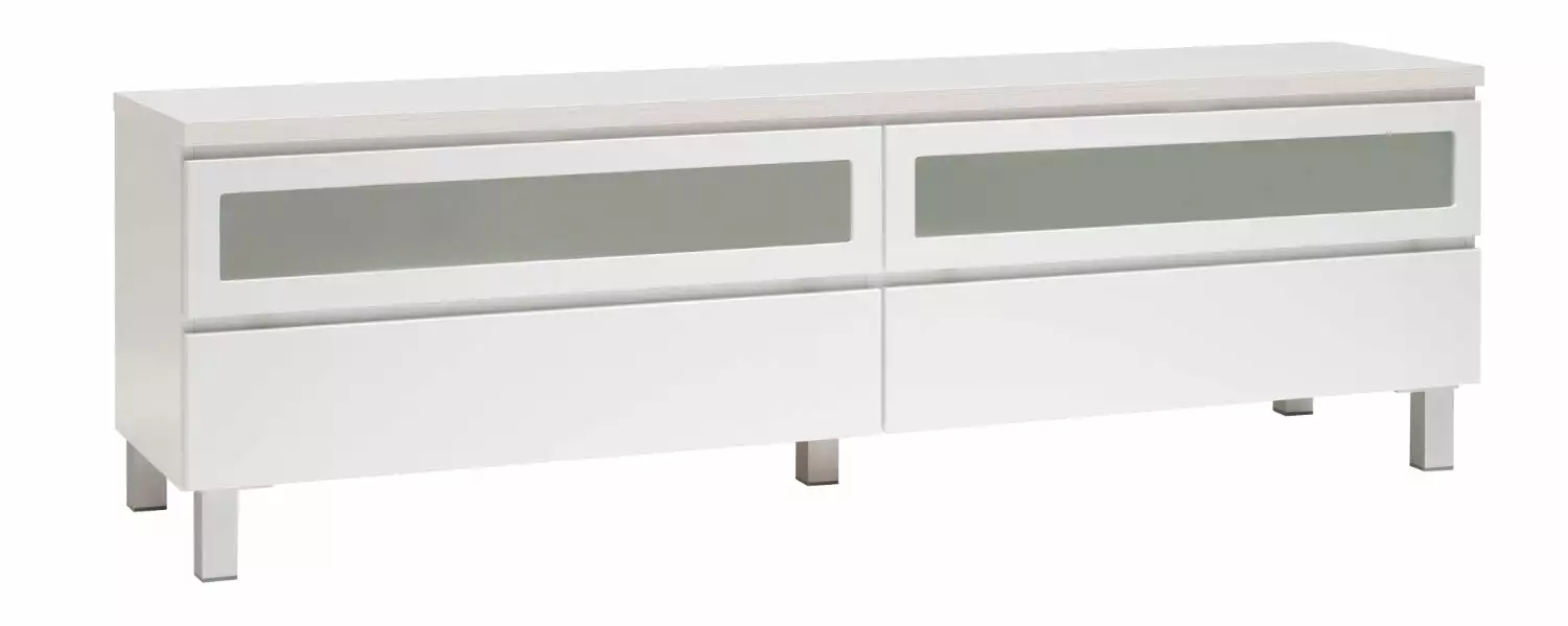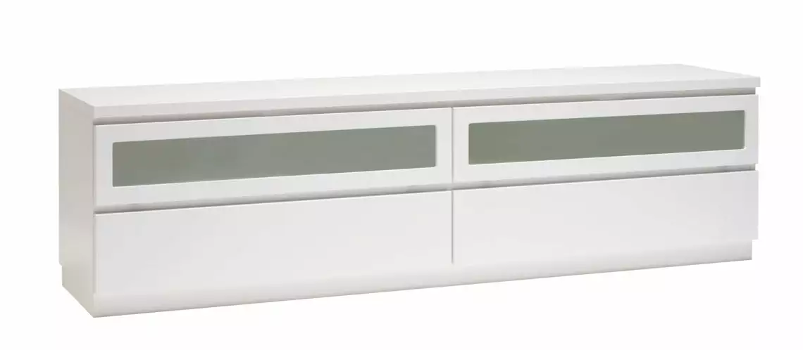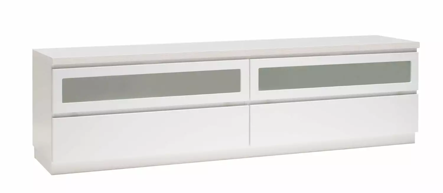 Käytännöllisessä Viiva-tv-tasossa on oikeanlaiset säilytystilat medialaitteille, läpiviennit johdoille sekä tietenkin sopivasti tilaa tv:lle ja mahdollisille lisäkaiuttimille. Yläosassa on kippiovet etsatulla lasilla ja alaosassa laatikot. Voit valita tason joko 5,5 cm korkealla jalkasokkelilla tai 10 cm korkeilla jaloilla. Tv-tasoon on saatavana lisävarusteena myös valkoinen karkaistu lasikansi.