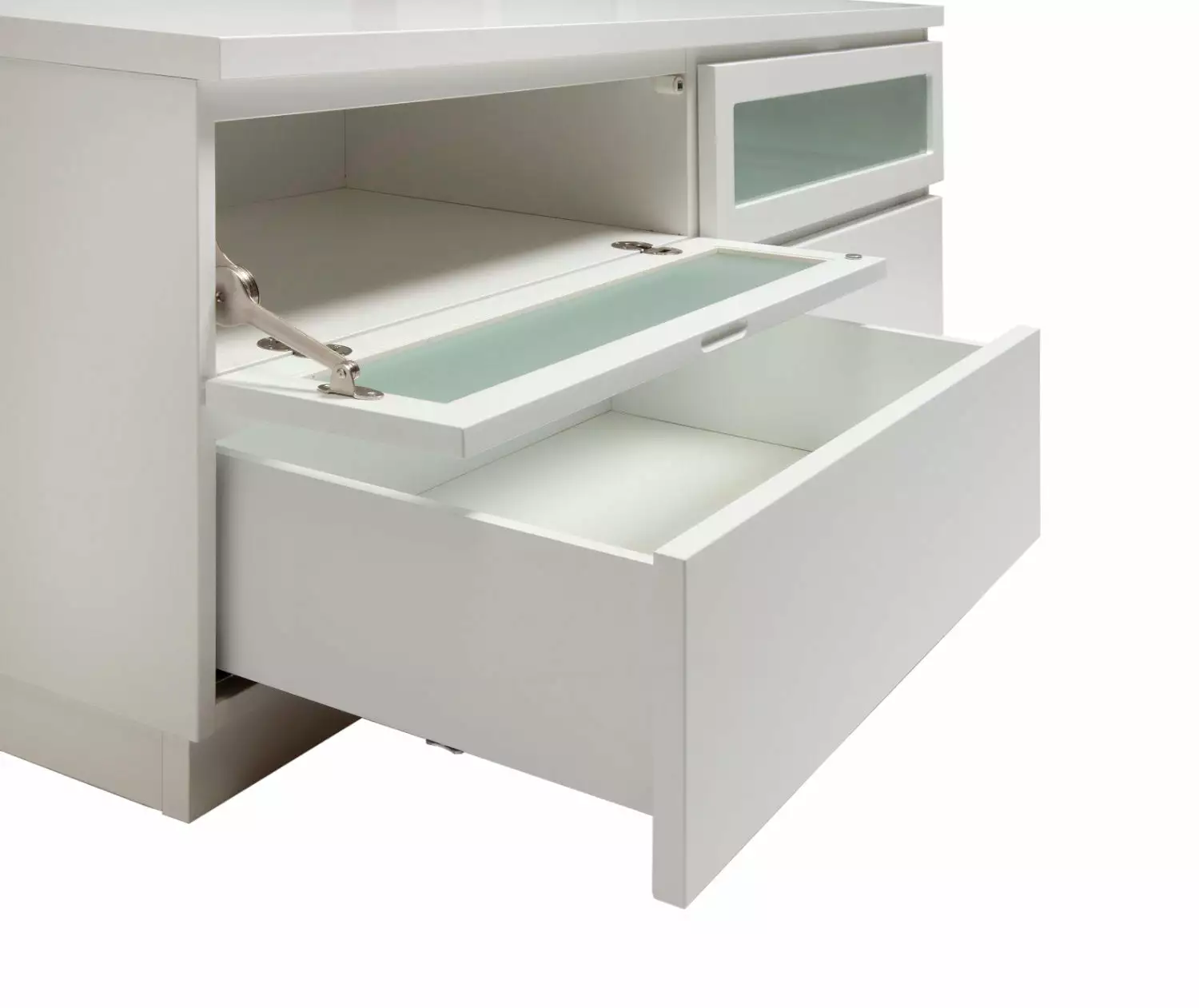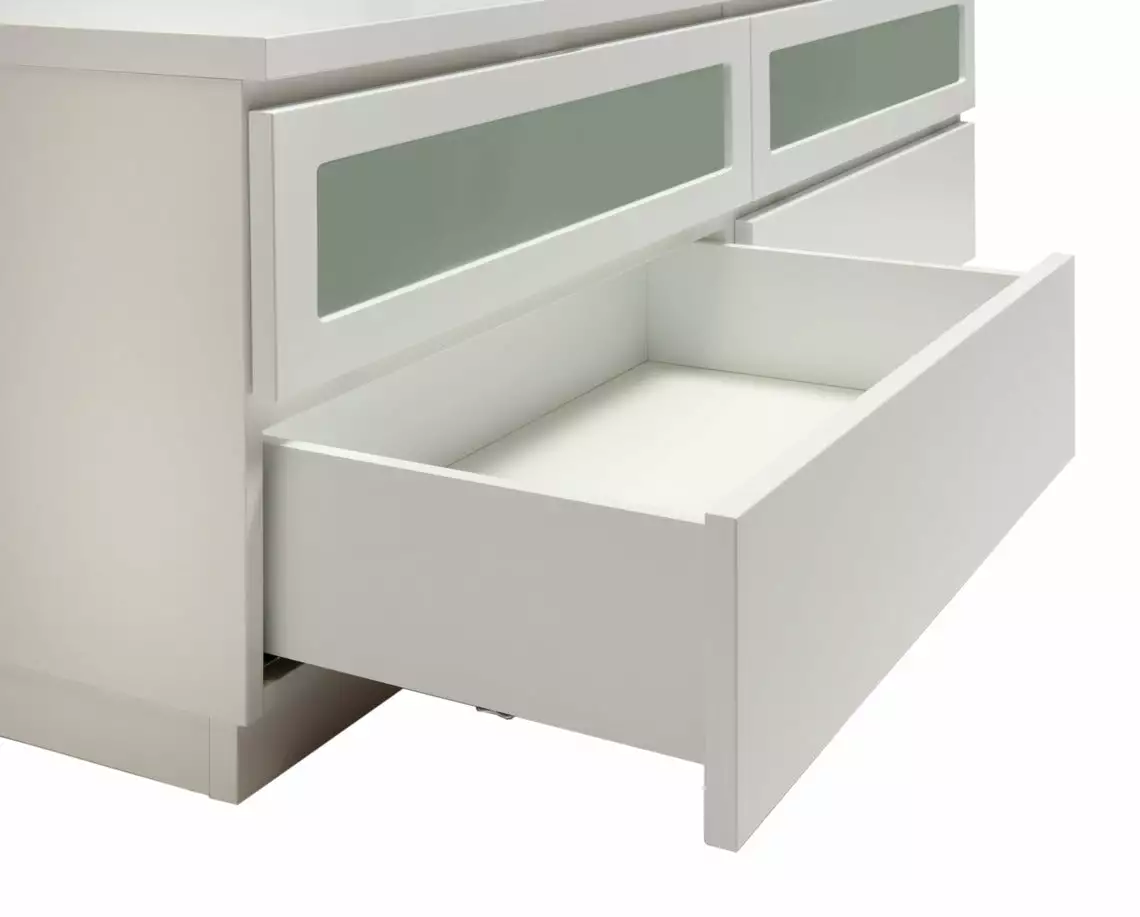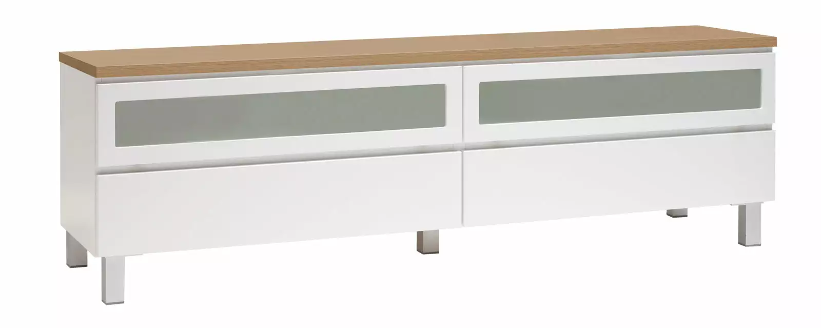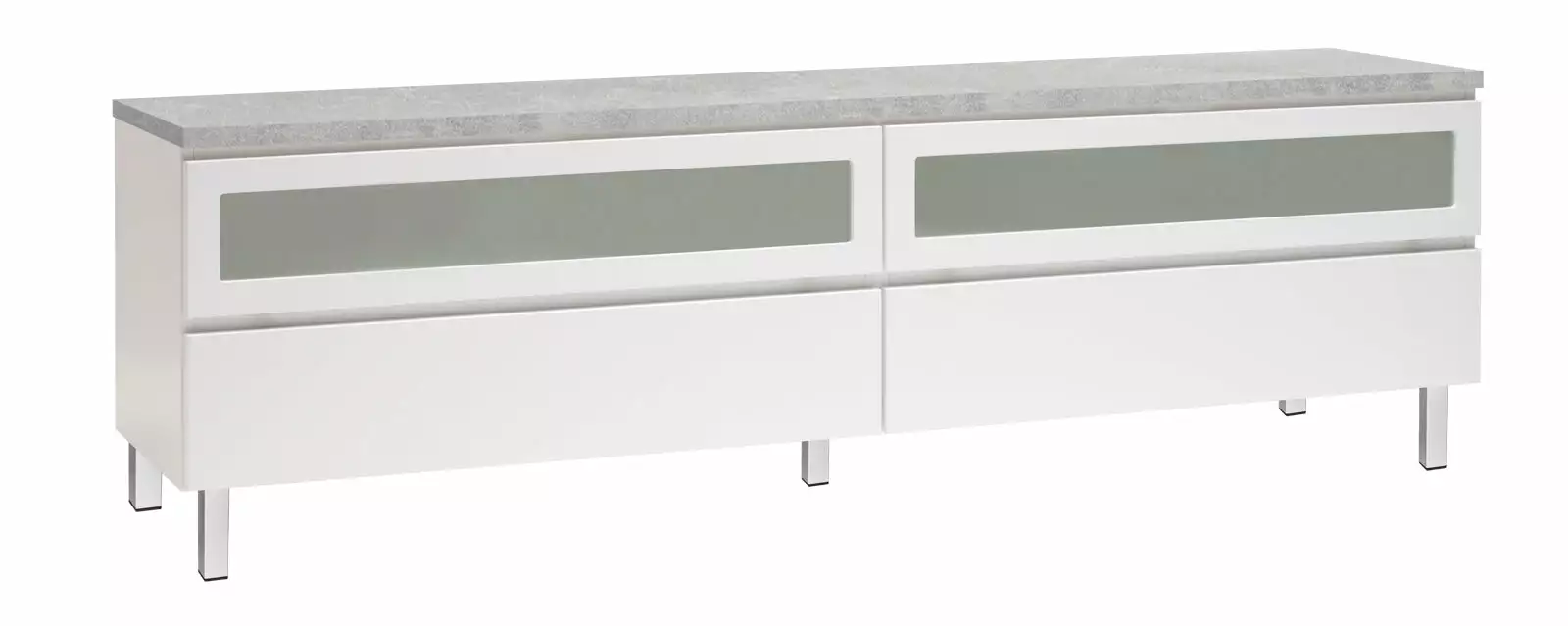 Käytännöllisessä Viiva-tv-tasossa on oikeanlaiset säilytystilat medialaitteille, läpiviennit johdoille sekä tietenkin sopivasti tilaa tv:lle ja mahdollisille lisäkaiuttimille. Yläosassa on kippiovet etsatulla lasilla ja alaosassa laatikot. Voit valita tason joko 5,5 cm korkealla jalkasokkelilla tai 10 cm korkeilla jaloilla. Tv-tasoon on saatavana lisävarusteena myös valkoinen karkaistu lasikansi.