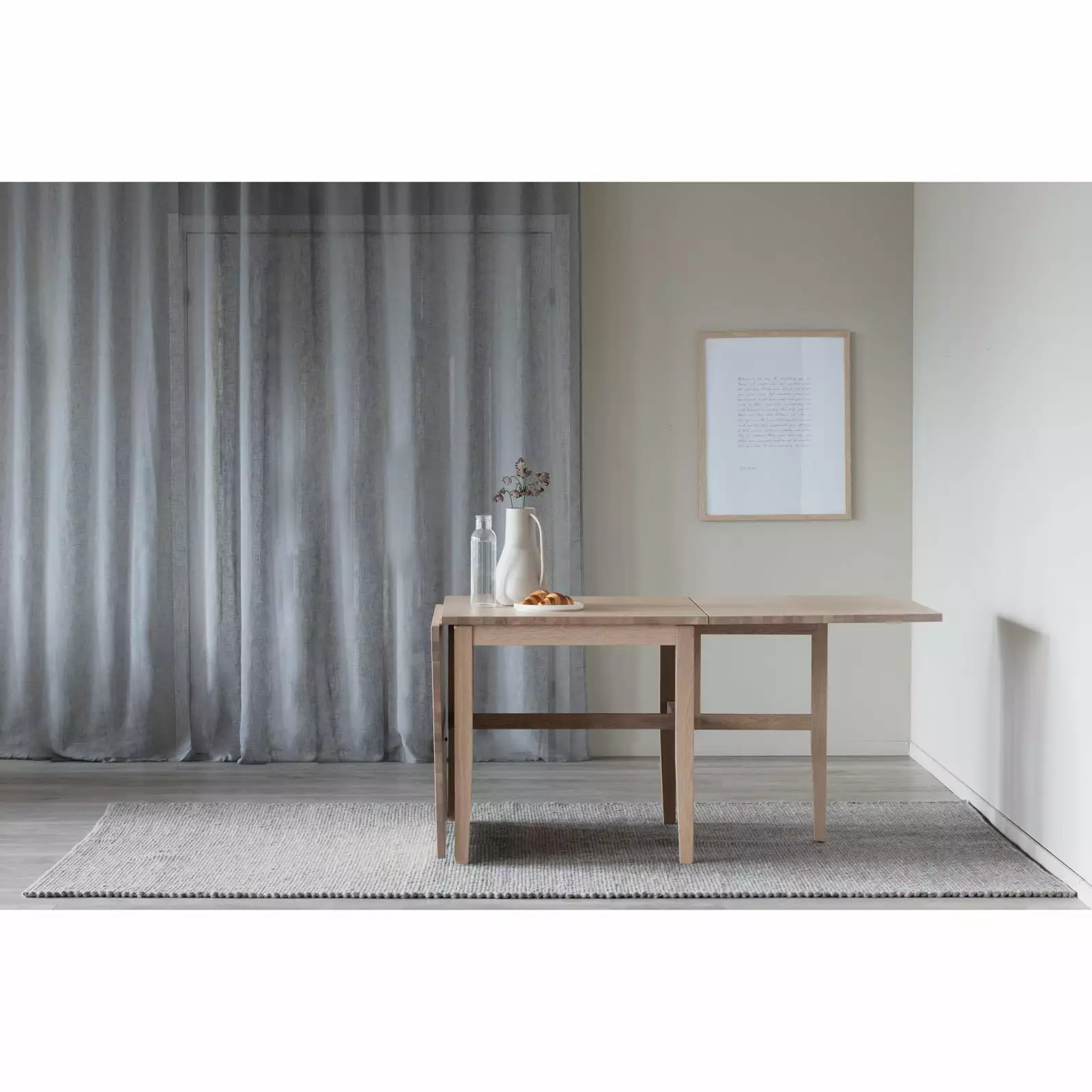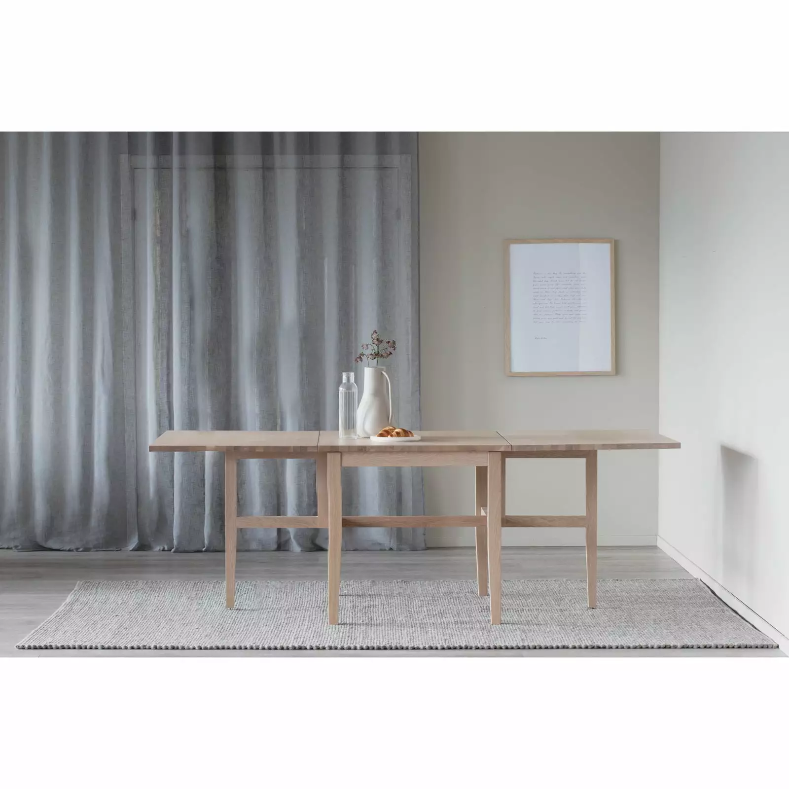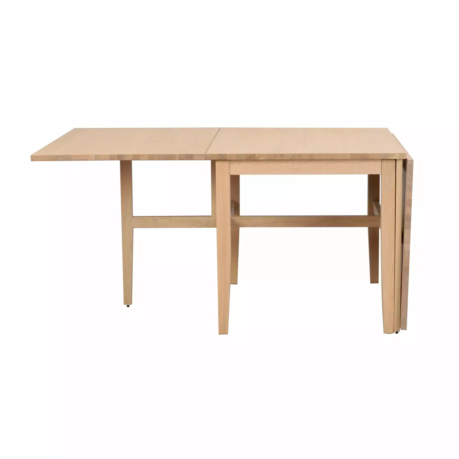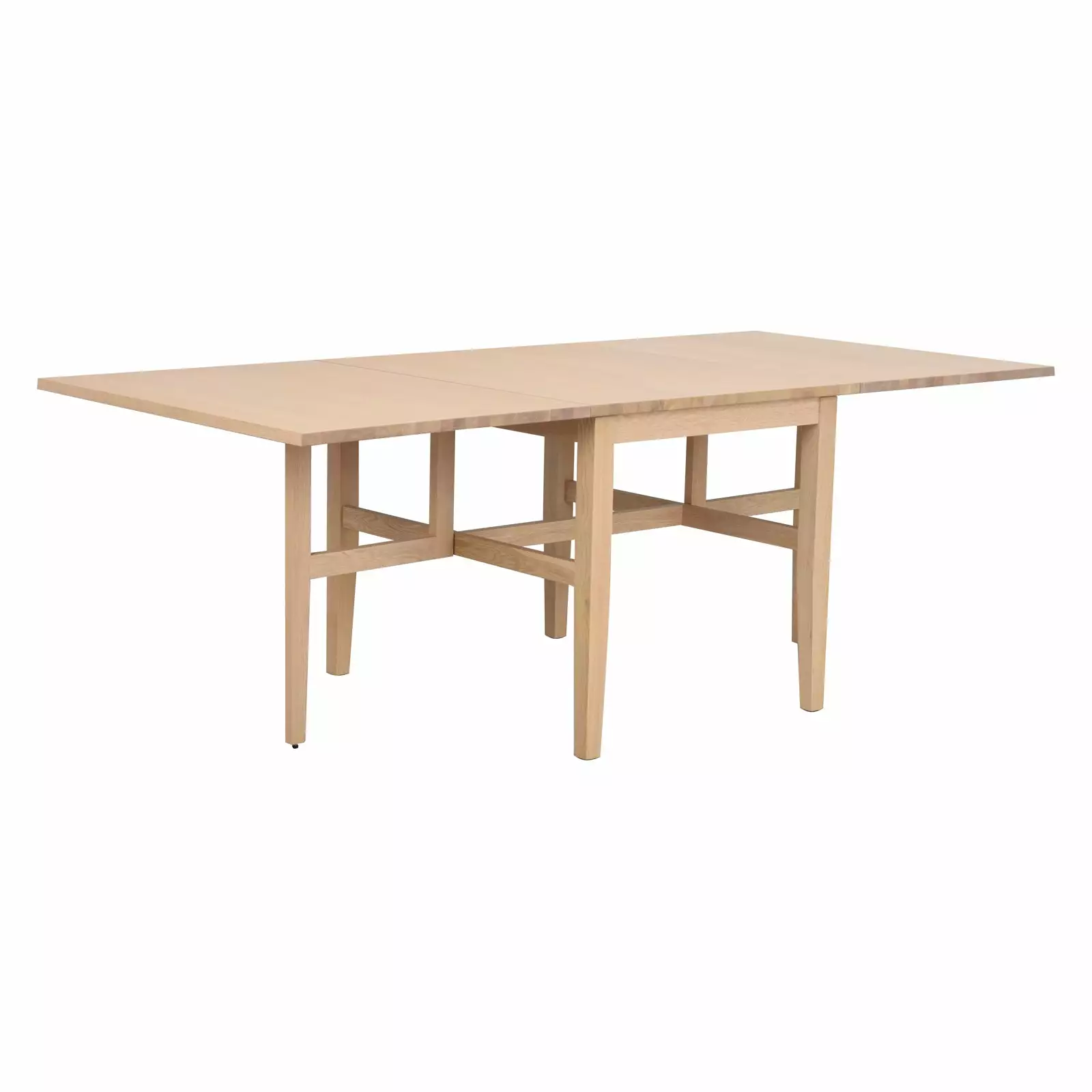 Brockton klaffipöydässä on 4 kiinteää ja 2 taitettavaa massiivitammista jalkaa, joiden ansiosta pöytä on vakaa sekä taitettuna että avattuna. Pöytälevy on tyylikkäästi lakattua tammiviilua, joka luo pintaan eloisuutta.