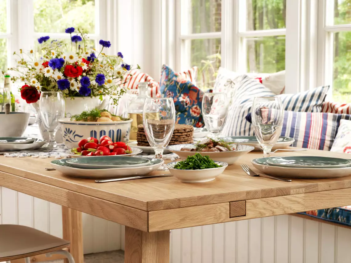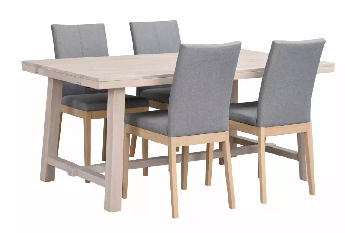 Klassisen kauniiseen Brooklyn-ruokapöytään on helppo yhdistellä erilaisia tuoleja tyylikkääksi ruokailuryhmä-kokonaisuudeksi.