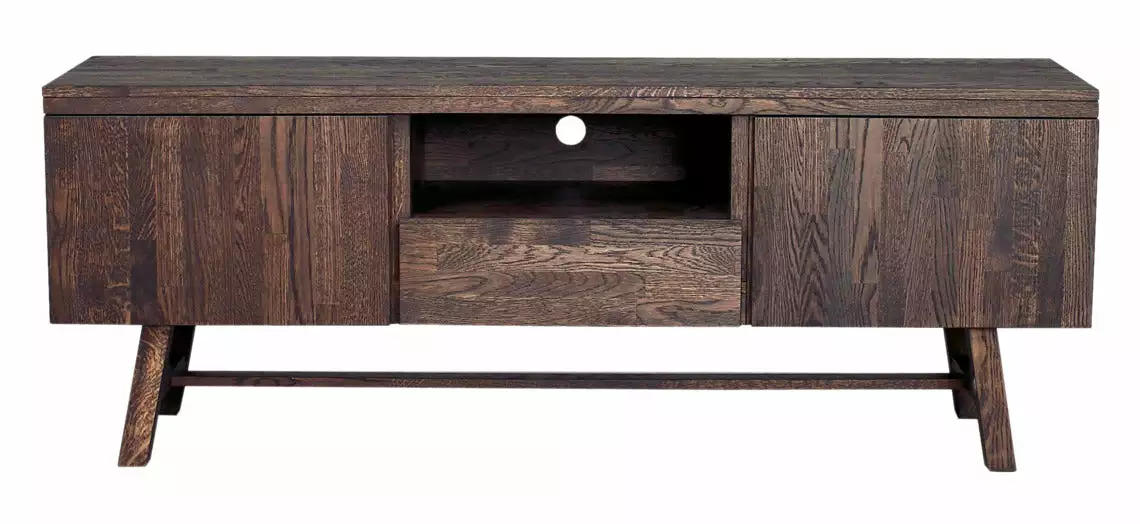 Massiivitamminen Brooklyn-sarjan tv-taso on komea medialaitteiden säilytystaso kotiin. Kookkaassa tv-tasossa on paljon säilytystilaa, sekä johtoaukollinen avohyllytila oheislaitteille. Todella tukevan viihdekeskuksen ovissa ja laatikoiden etulevyissä on Soft Close -mekanismilla toimivat vaimentimet, joiden ansiosta ne sulkeutuvat hitaasti.