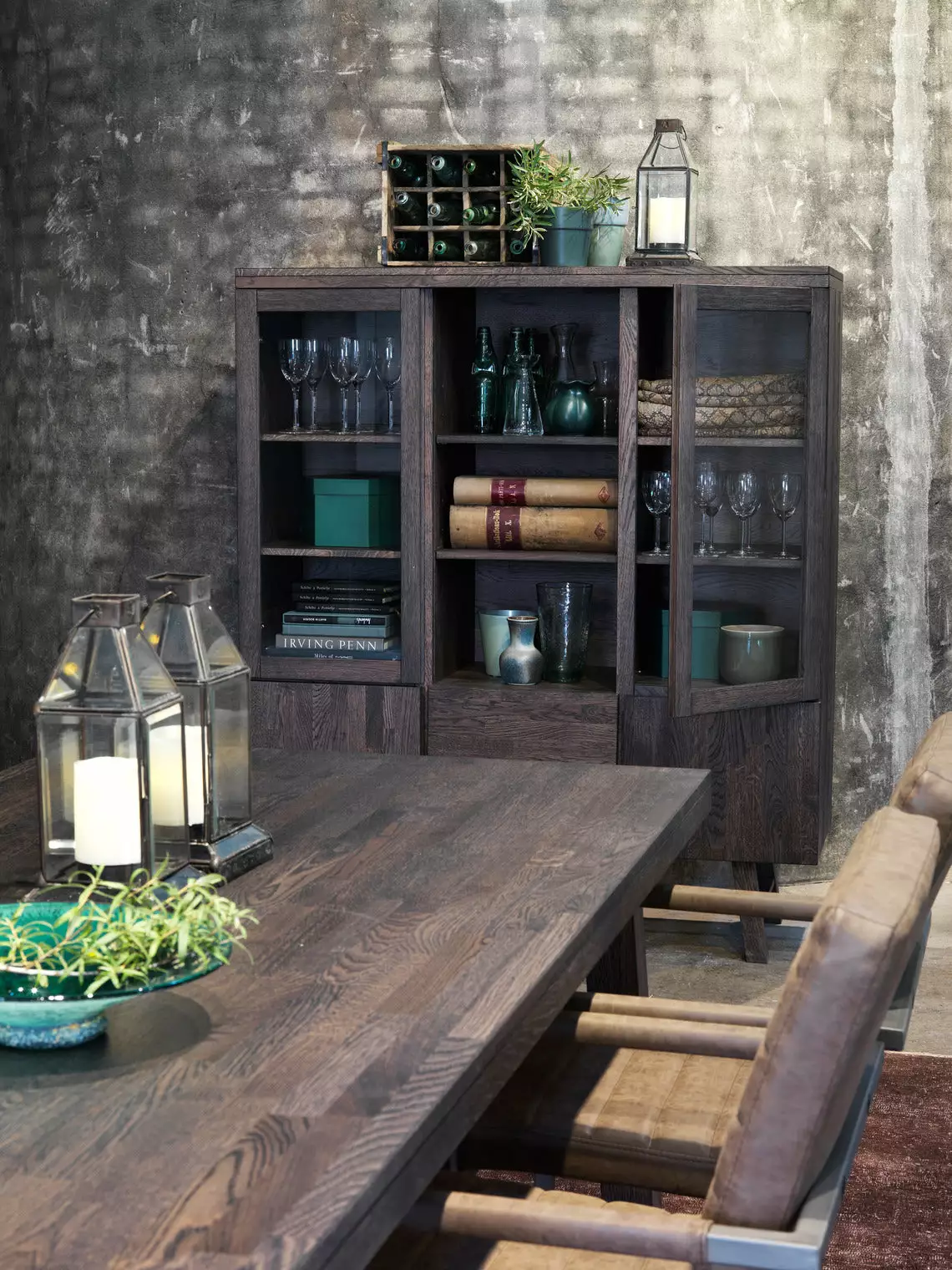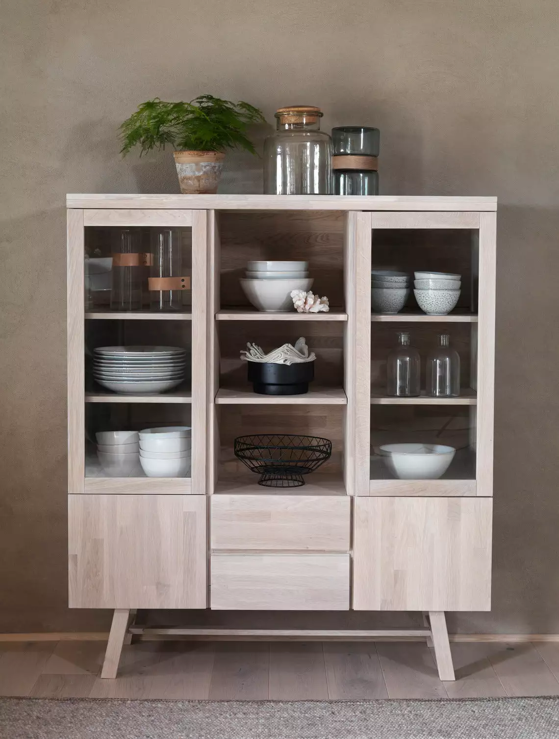 Massiivitamminen Brooklyn-vitriini on upean näköinen säilytysratkaisu kodin eri tiloihin. Vitriini vangitsee katseita ja on samalla verraton tilaihme monipuolisten säilytysmahdollisuuksiensa ansiosta. Lasiovien taakse saa näyttävästi koriste-esineitä ja käyttöesineille, sekä astioille on lisäksi käytännöllistä avohyllytilaa. Tavarat saa myös järjestettyä katseilta piiloon vitriinin alaosaan. Brooklyn-vitriinin ovissa ja laatikoiden etulevyissä on Soft Close -mekanismilla toimivat vaimentimet, joiden ansiosta ne sulkeutuvat hitaasti.
