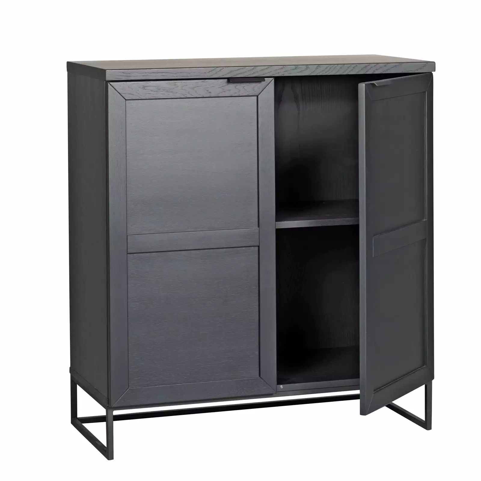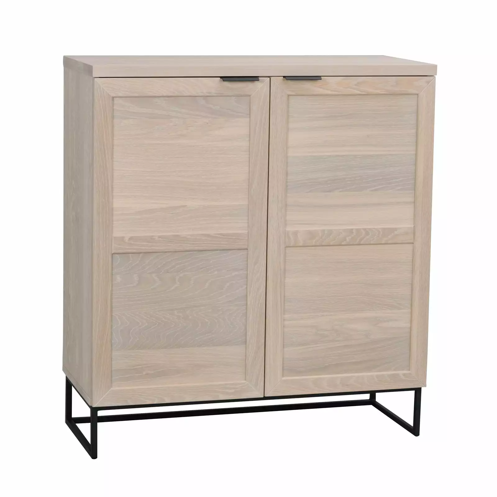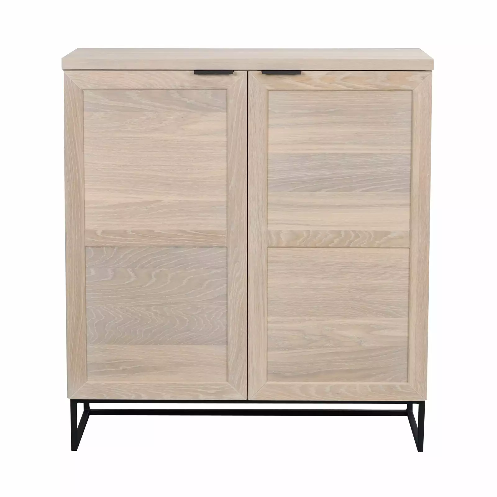 Everett-kaappi on näyttävä säilytyskokonaisuus, joka sopii kaikkiin kodin oleskelutiloihin. Matala, senkiksi sopiva kaappi on valmistettu vaaleasta tai mustaksi lakatusta harjatusta luonnonmukaisesta tammesta ja sen ohuet metallijalat tuovat muuten jykevään säilytyskalusteeseen ilmavuutta ja helpottavat siivousta, sekä keventävät ulkoasua.