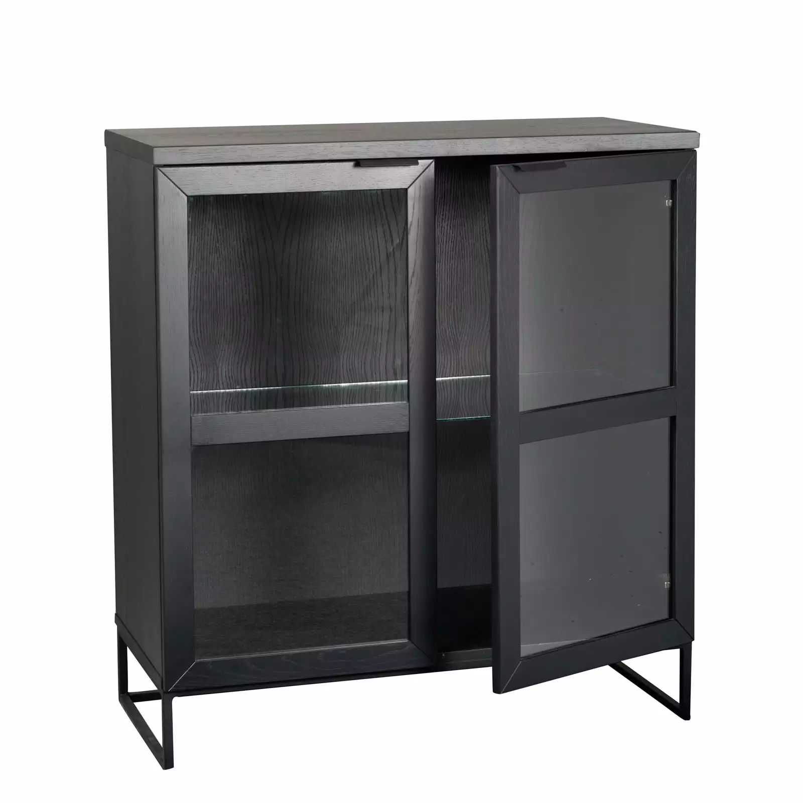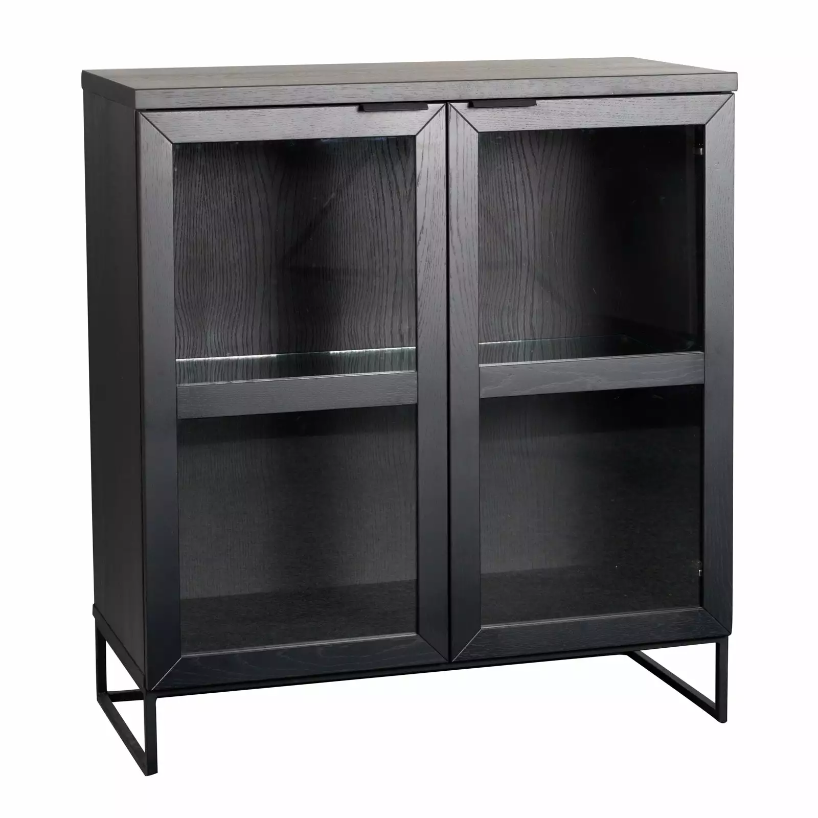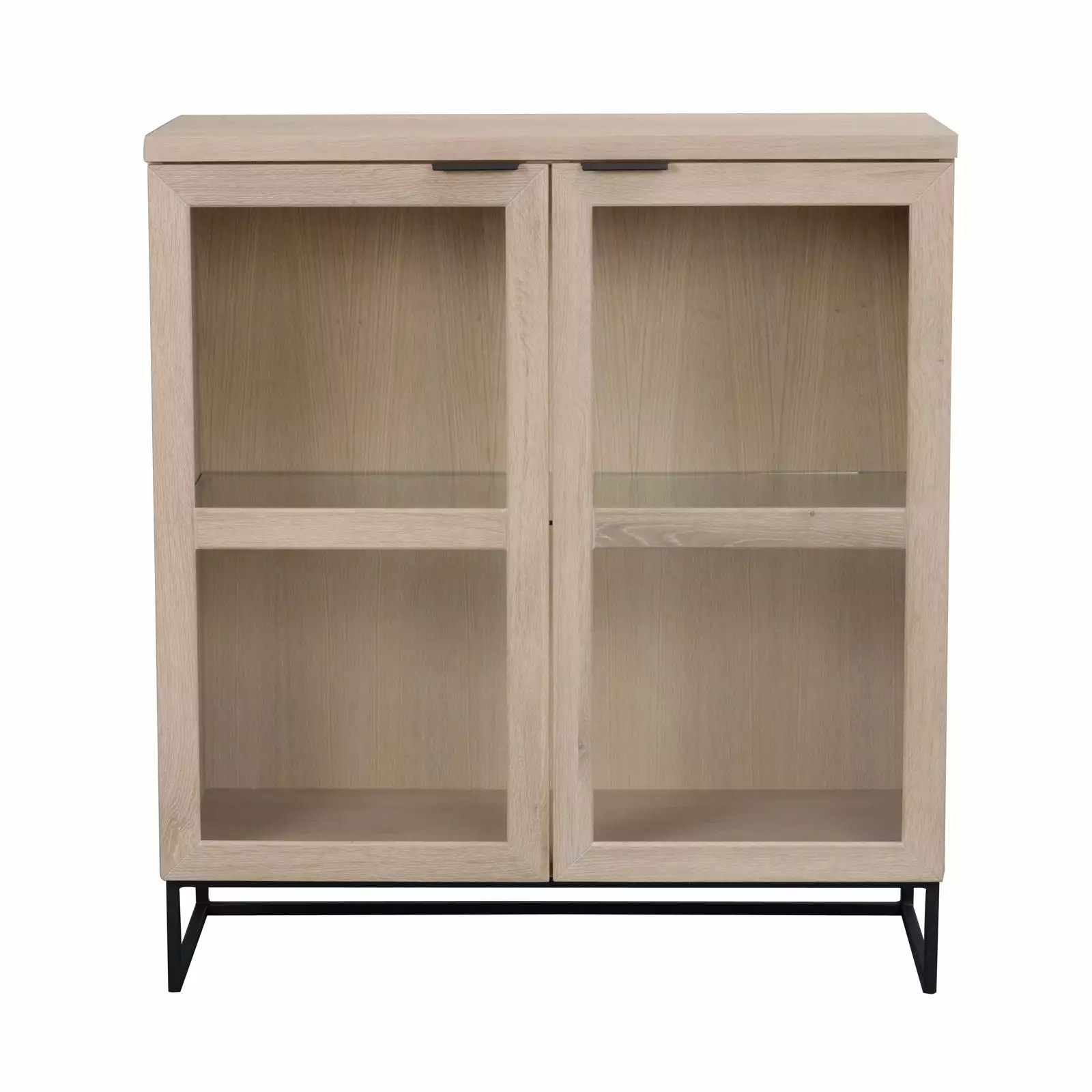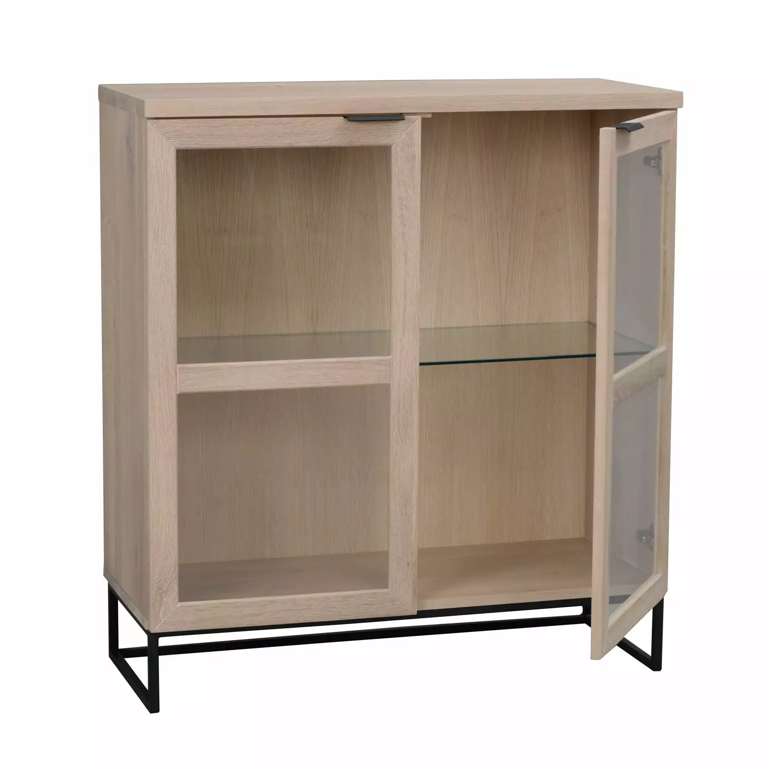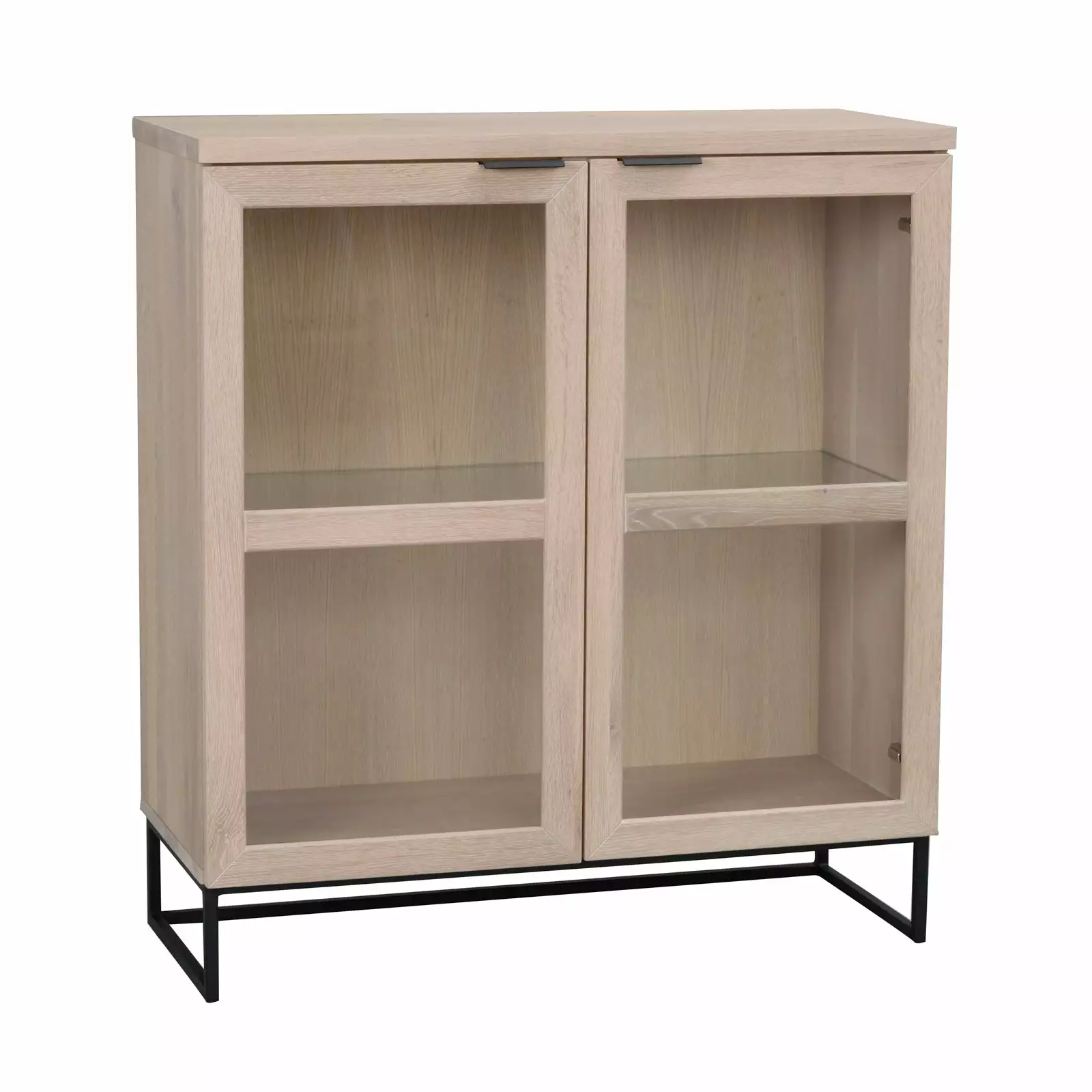 Everett-vitriinikaappi on upea lasikaappi ohuilla metallijaloilla. Suoralinjainen matala vitriini on valmistettu vaaleasta tai mustaksi lakatusta harjatusta luonnonmukaisesta tammesta ja siinä on mustat jauhemaalatut metallijalat. Ohuet tyylikkäät jalat keventävät säilytyskalusteen ulkoasua.