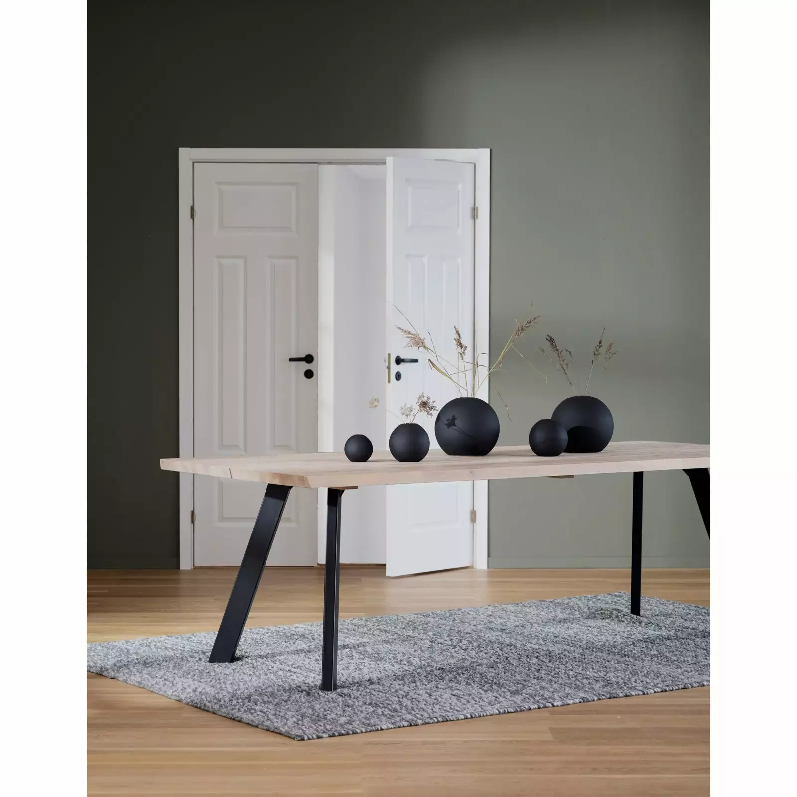 Fred-ruokapöytä on laadukasta ja kestävää massiivitammea. Pöytä on saatavilla kahdessa eri värissä ja kahdessa eri koossa. Fred-pöydän mustat metallijalat viimeistelevät näyttävän kokonaisuuden ja takaavat, että pöytä pysyy tukevasti paikallaan. Voit halutessasi vaihdella jalkojen paikkaa, jotta saat omat lempituolisi mahtumaan sujuvasti pöydän äärelle. Valitse omaan ruokailutilaasi sopiva vaihtoehto ja kutsu ystäväsi koolle ihastelemaan!
