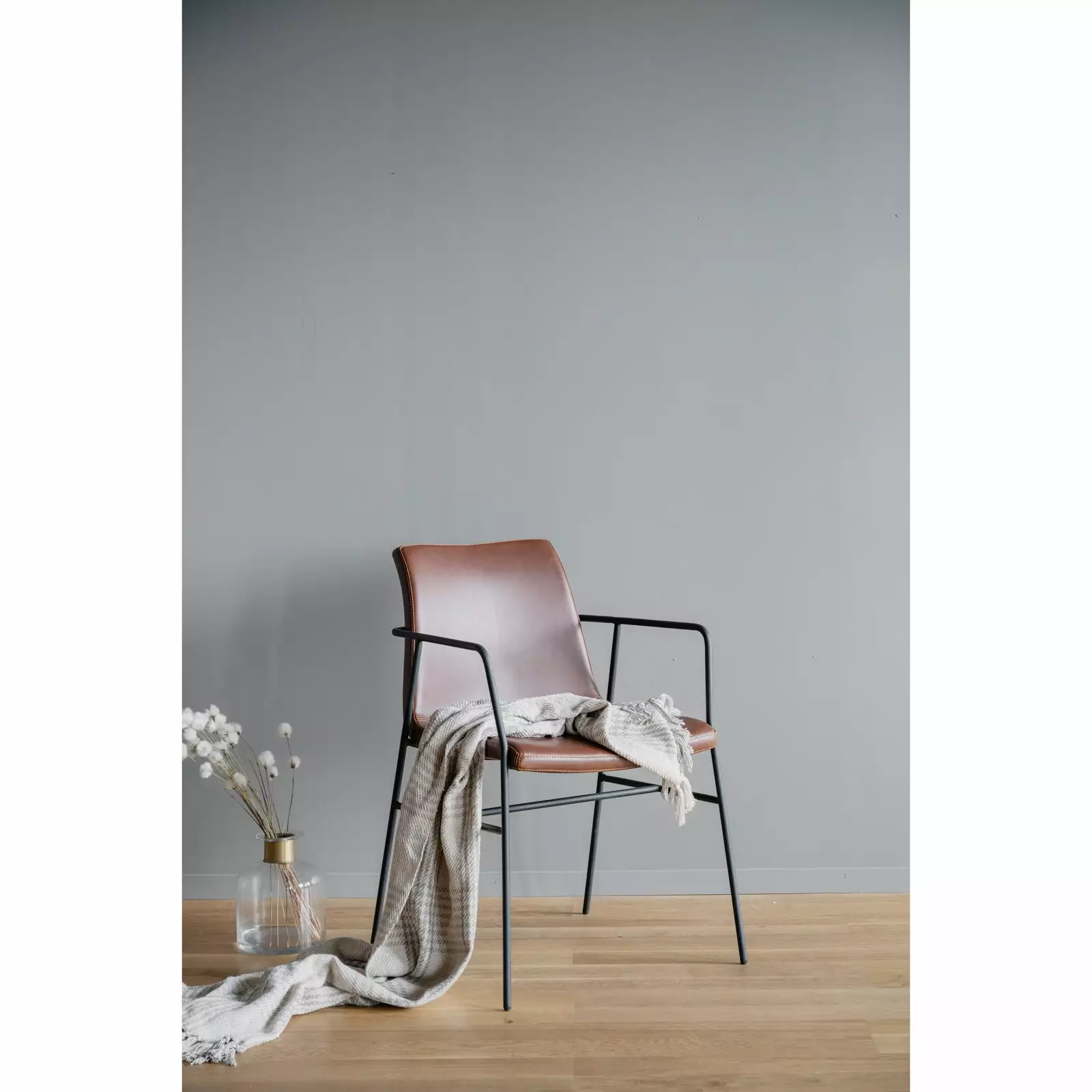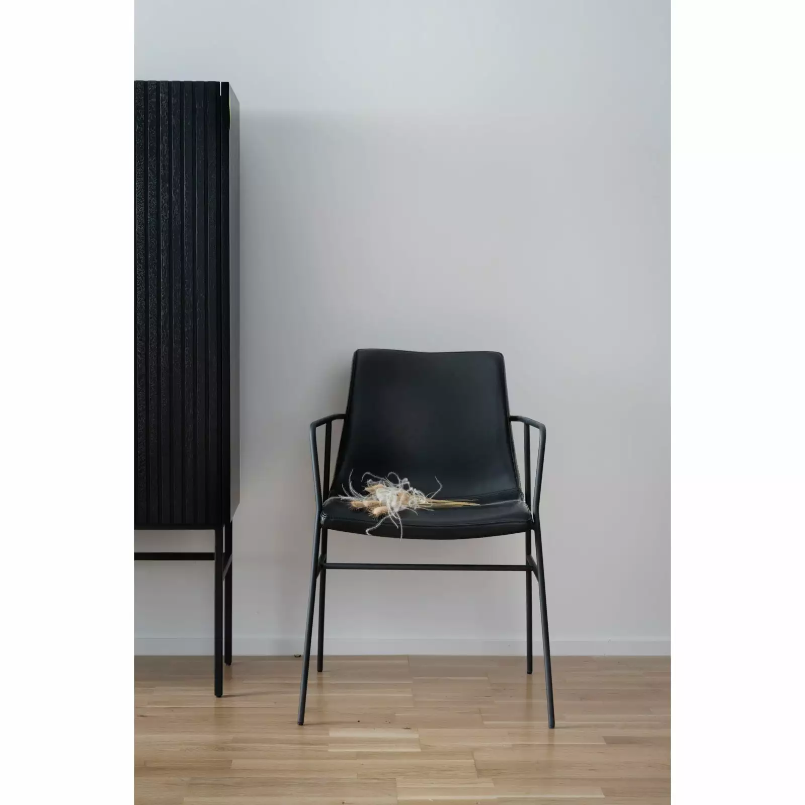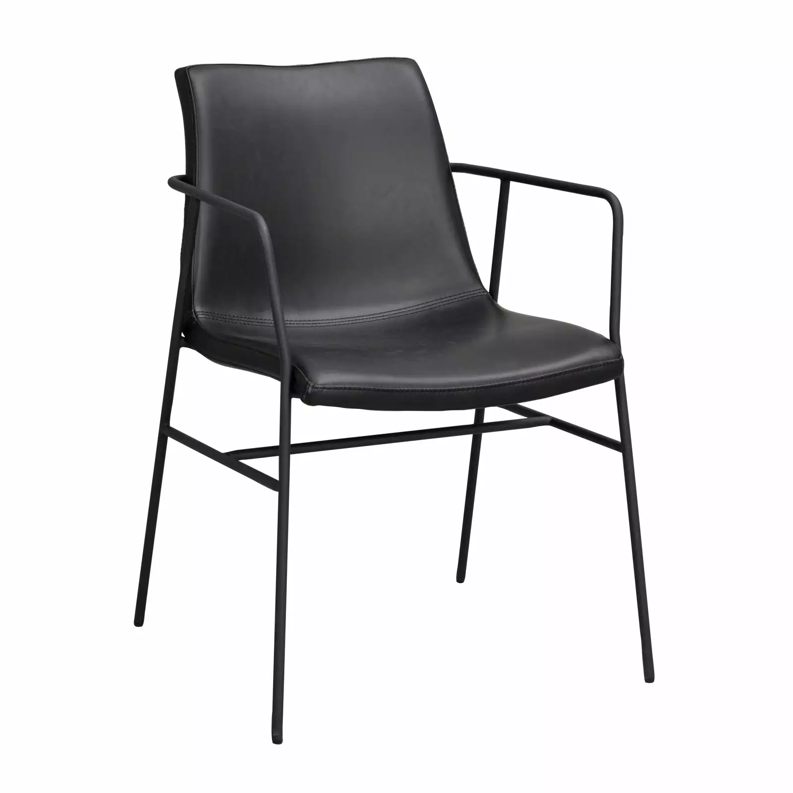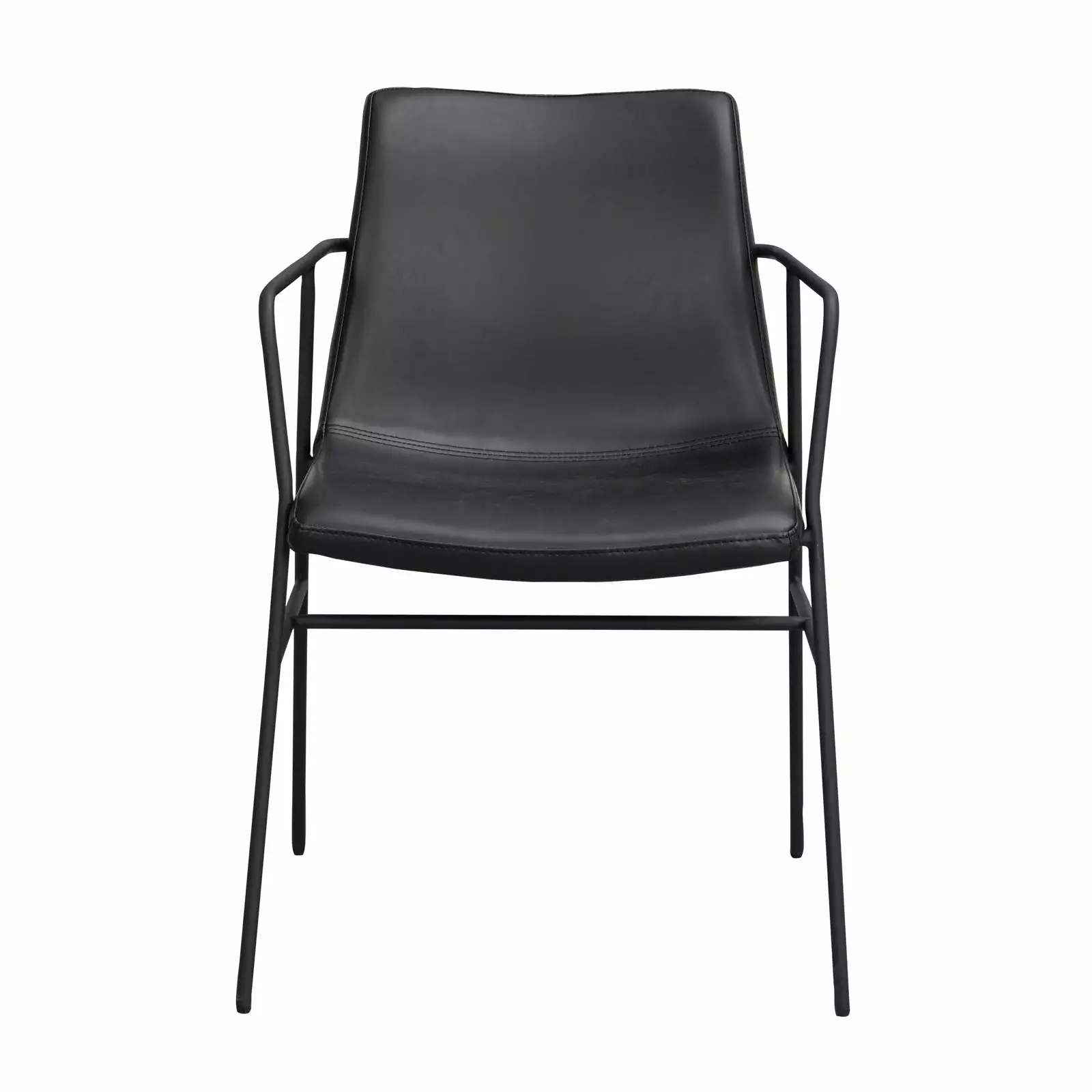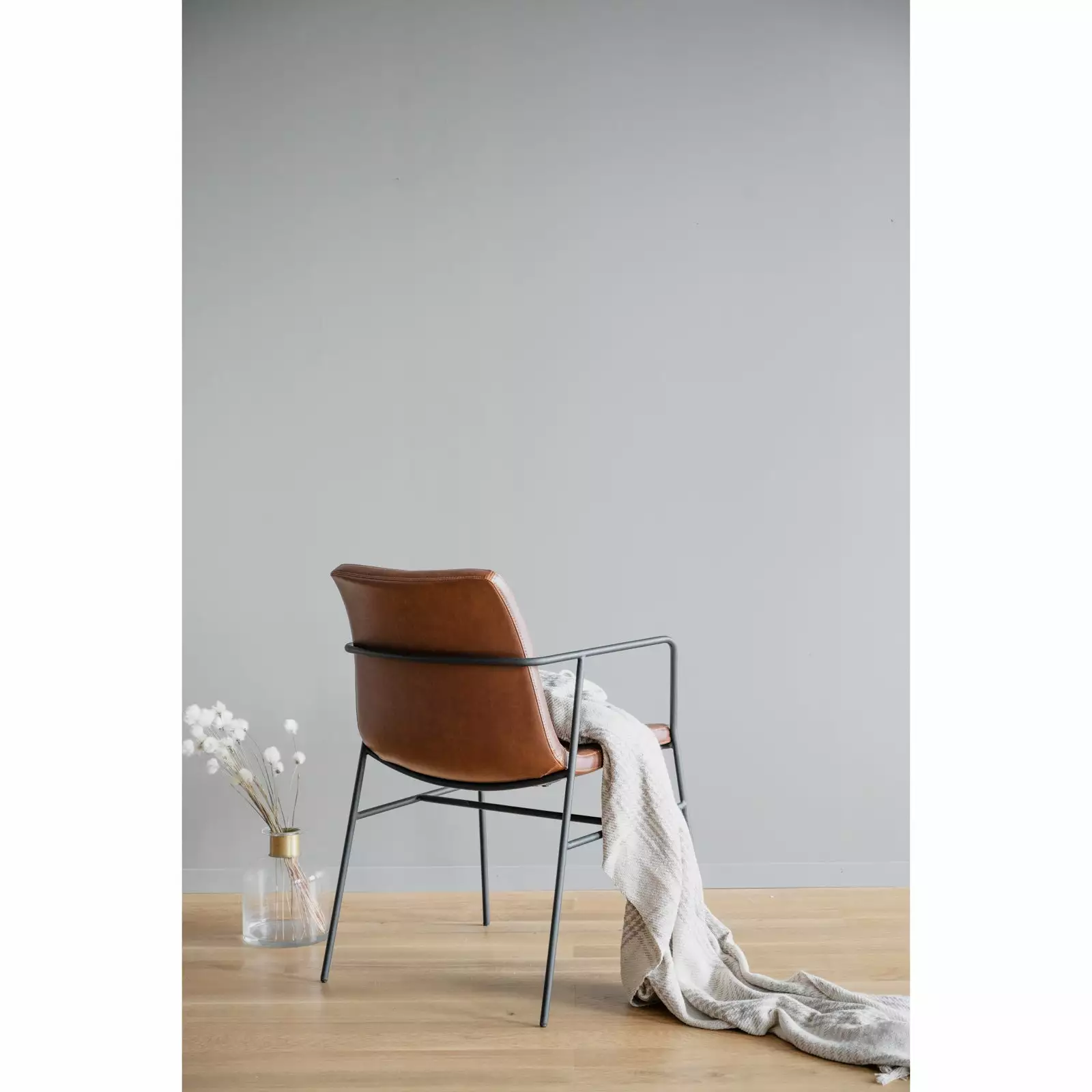 Huntingbay-tuoli on moderni ja linjakas kuppimallinen PU-nahkaverhoiltu ruokatuoli. Käsinojallisen keinonahkatuolin kaunis kiiltävä pinta tuo elävyyttä ruokailutilaan ja se on kaiken lisäksi helppo puhdistaa kostealla rätillä puhtaaksi. Huntingbay-tuolin kevyt ja sulavalinjainen muotokieli ja tekee siitä nykyaikaisen ja sisustuksellisen elementin myös kodin muihin oleskelutiloihin. Tuolin ohuet metallijalat, jotka jatkuvat käsinojiksi, viimeistelevät modernin ja tyylikkään vaikutelman.