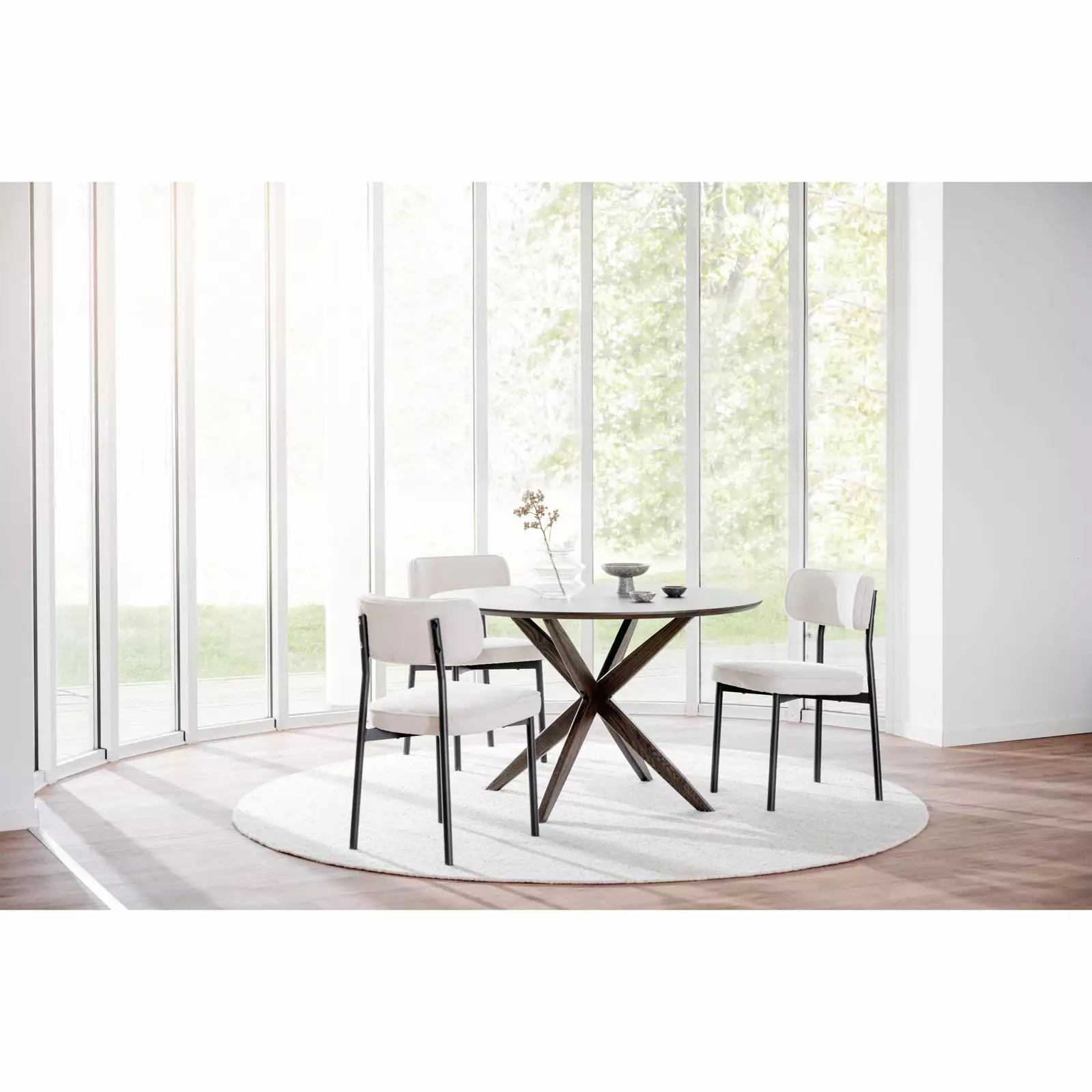 kanssa. Käytännöllisen pyöristetyn muotoilunsa ansiosta Paisley on niin mukava istua, että istut siinä mielelläsi pidemmänkin ruokailun tai vaikka koko työpäivän ajan! Tuolissa on pyöristetyt mustat metallijalat, jotka varmistavat tuolin kestävyyden vuosien ajaksi.