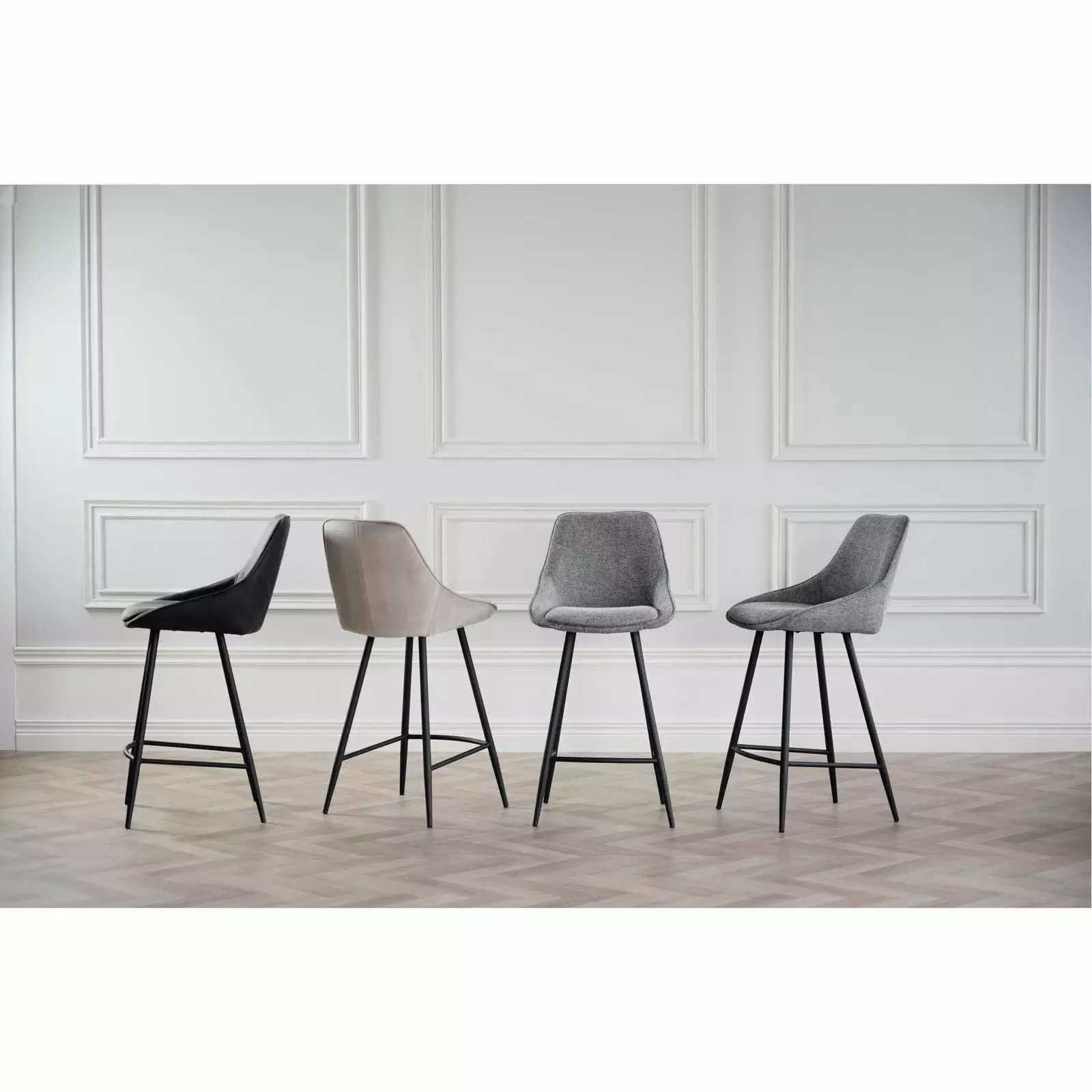 Moderni Sierra-baarituoli ihastuttaa istuinmukavuudellaan ja kupinmuotoisella istuinosallaan. Sierra-baarituolissa on trendikäs kangasverhoilu ja hieman viistot mustat jauhemaalatut metallijalat, jotka keventävät tuolin ilmettä. Korkea selkänoja ja jalkatuki tekevät tuolista erityisen mukavan istua, joten siinä viihdyt huomaamattasikin pidempään ystäviesi kanssa seurustellen.