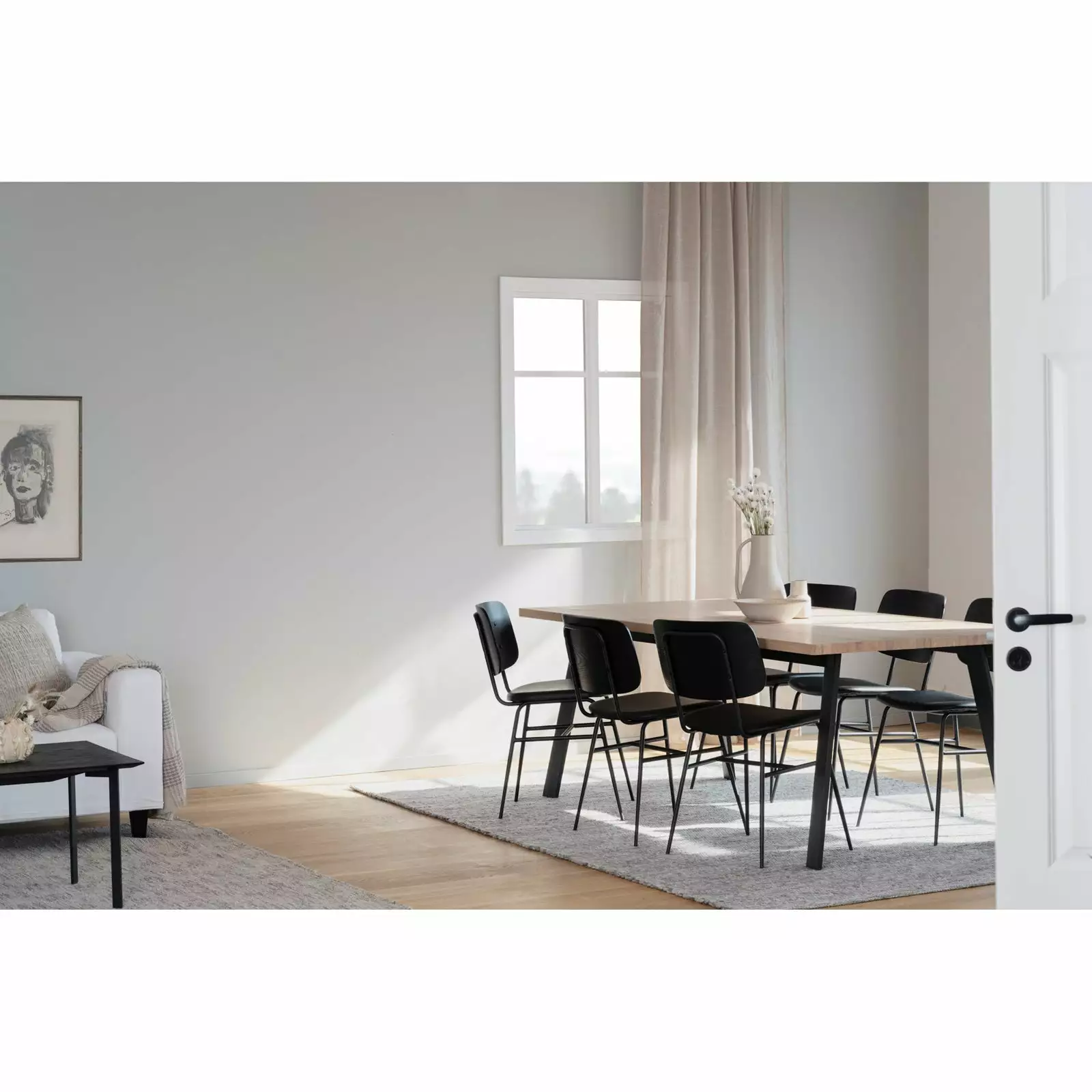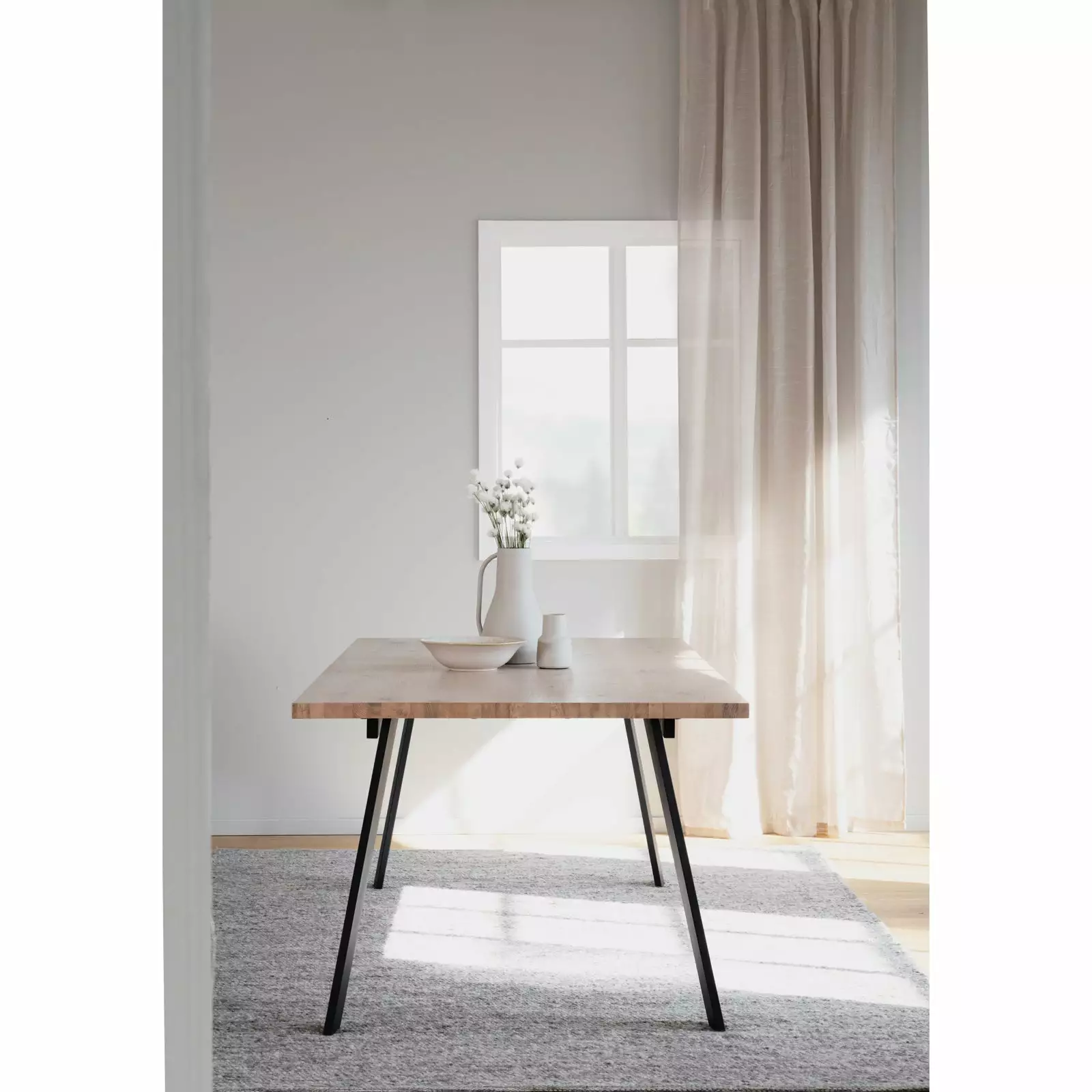Suoralinjainen Winnipeg-ruokapöytä luo ruokailutilaasi tyylikästä tunnelmaa! Trendikäs viilutettu kansi yhdistettynä mustiin metallijalkoihin sopii erinomaisesti skandinaaviseen sisustustyyliin ja tuo eloa ruokailutilaan. Pöydän kansi on lakattu, mikä helpottaa luonnonmateriaalin puhtaana pitämistä – pyyhi kuivaksi puristetulla liinalla kannelle läikähtäneet roiskeet.