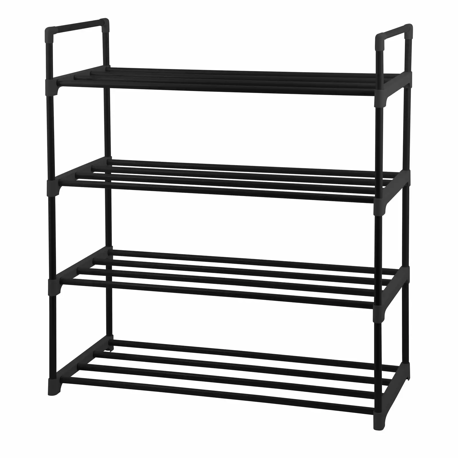 Day-kenkäteline on käytännöllinen kenkien säilytysteline eteiseen, vaatehuoneeseen tai varastotiloihin. Neljä hyllyä korkean kenkähyllyn leveys on 65 cm, joten sihen mahtuu useampikin kenkäpari siististi säilytykseen.