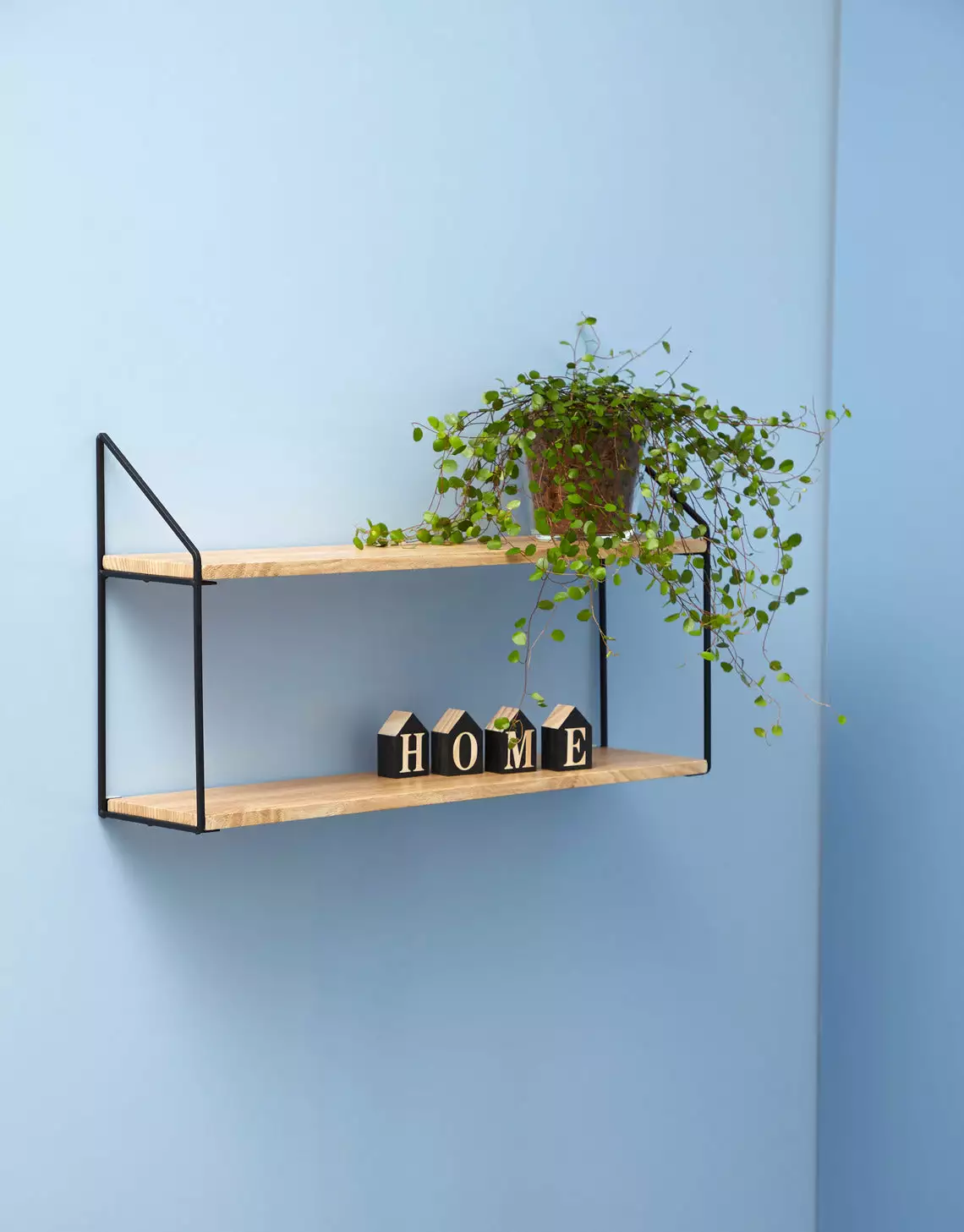 Siro ja kaunis Day-seinähylly sopii monenlaiseen tilaan ja sisustukseen. Keittiössä laitat siihen esille yrtit ja purnukat. Olohuoneessa tai makuuhuoneessa hyllyiltä löytävät paikkansa koriste-esineet ja pienet viherkasvit. Seinähyllykön runko on maalattua metallia ja hyllylevyt ovat pinnoitettua mdf-huonekalulevyä.