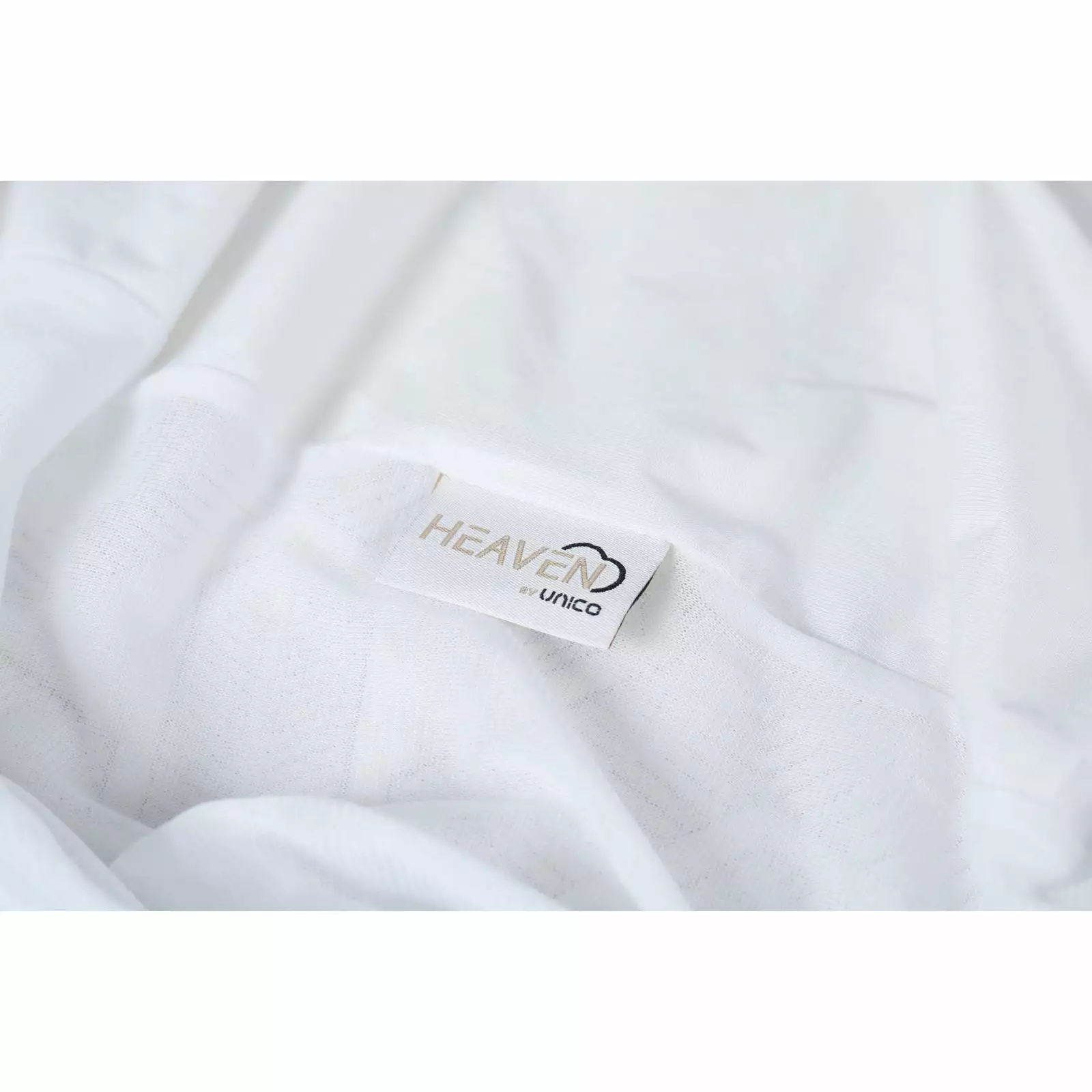 Heaven By Unico -suojalakana on varustettu älykkäällä vedenkestävällä kalvolla, joka suodattaa erinomaisesti kosteutta. Suojalakana on valmistettu Tencel™ -muuntokuidusta, joka on vastuullisesti valmistettu ja kestävä materiaali. Suojalakanan voi pestä 60°C asteessa.
