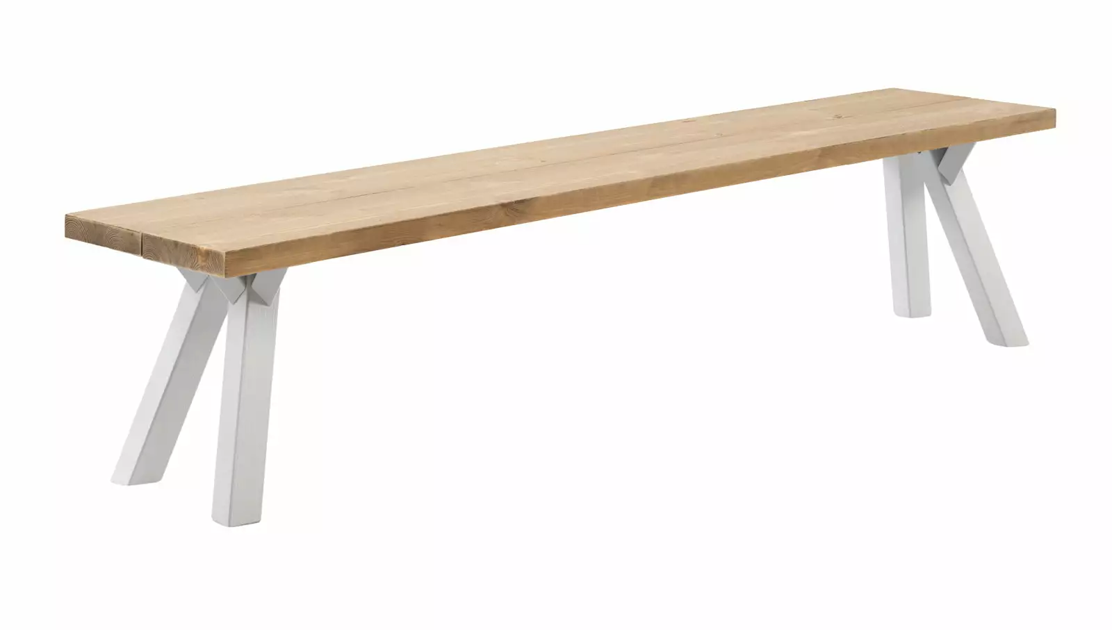 Upea Venla-mäntypenkki sopii sekä sisä- että ulkokäyttöön. Monipuolisesta penkistä saat räätälöityä mieleisesi version valitsemalla puuvärin sekä jalkamallin ja jalkojen värin. Tässä Venla-penkin mallissa on vinot country-henkiset puujalat. Penkissä on kahdesta lankusta valmistettu istuin, jonka materiaali on vahattua ja harjattua massiivimäntyä. Käytä penkkiä osana ruokailuryhmää tai vaikka yksittäisenä istuimena.